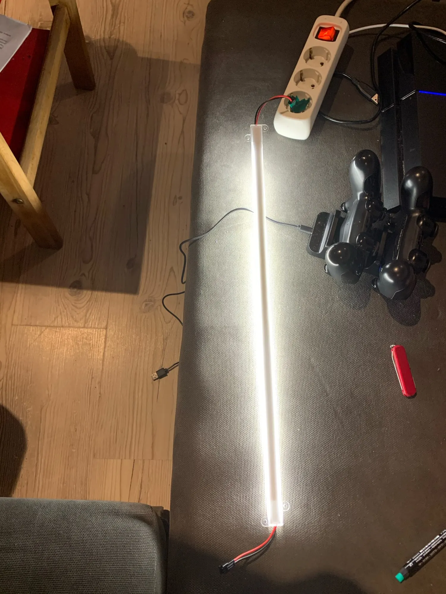 боялся что будет тусклой, но нет всё хорошо если не на 7 то на 5 Вт точно есть. вроде сильно не греется. брал для подсветки в нише отлично. Мерцание есть даже на фото споймал, но мне пофиг. для кладовки в самый раз., вот разбирать может быть не легко, на торцах прозрачные крепление заклеено на хрупкий корпус, вероятно помучатся с половинкой лезвия. Разобрал крепление со штырьками для проверки, так как никого стартового конекта под вилку в комплекте Нету.Для этого над штырьками засовывал скрепку. см. фото.