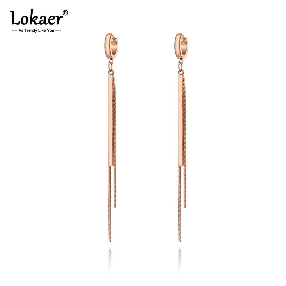 Женские длинные серьги Lokaer, из титановой стали серьги-кольца для вечеринки пробы, в полоску и на цепочке, E19228