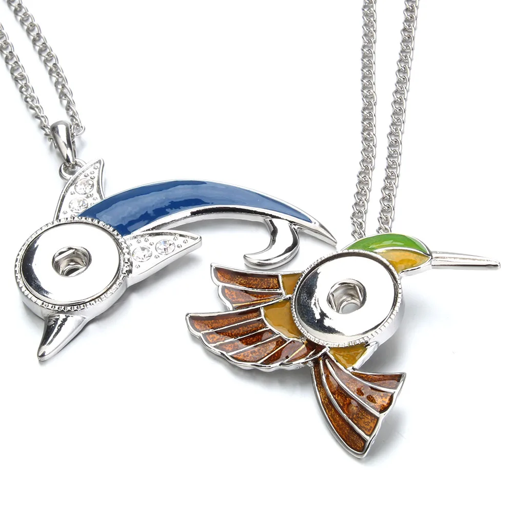 Новинка, одежда с изображением птицы Дельфин кнопки ожерелья для женщин металлическая Серебристая Цвет ожерелье 18 мм оснастки ювелирные изделия, Кулон, Ожерелье