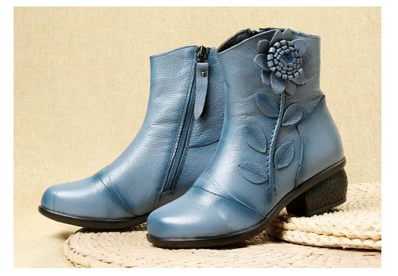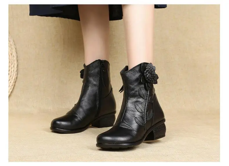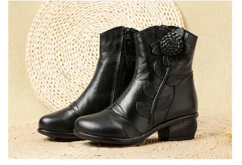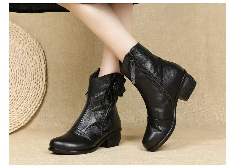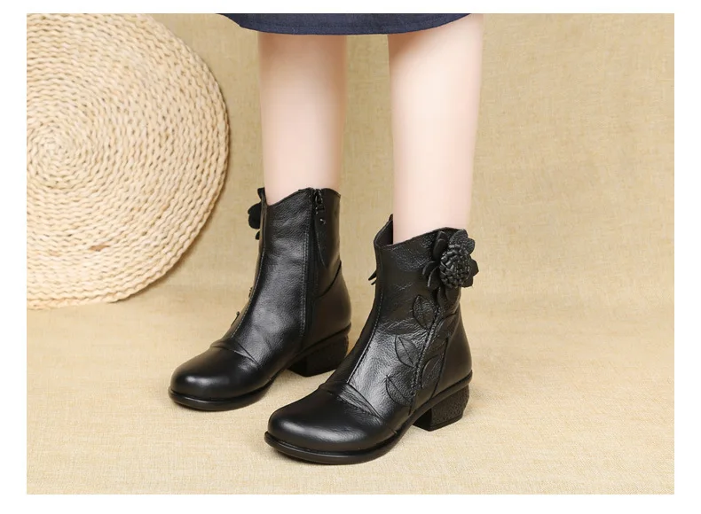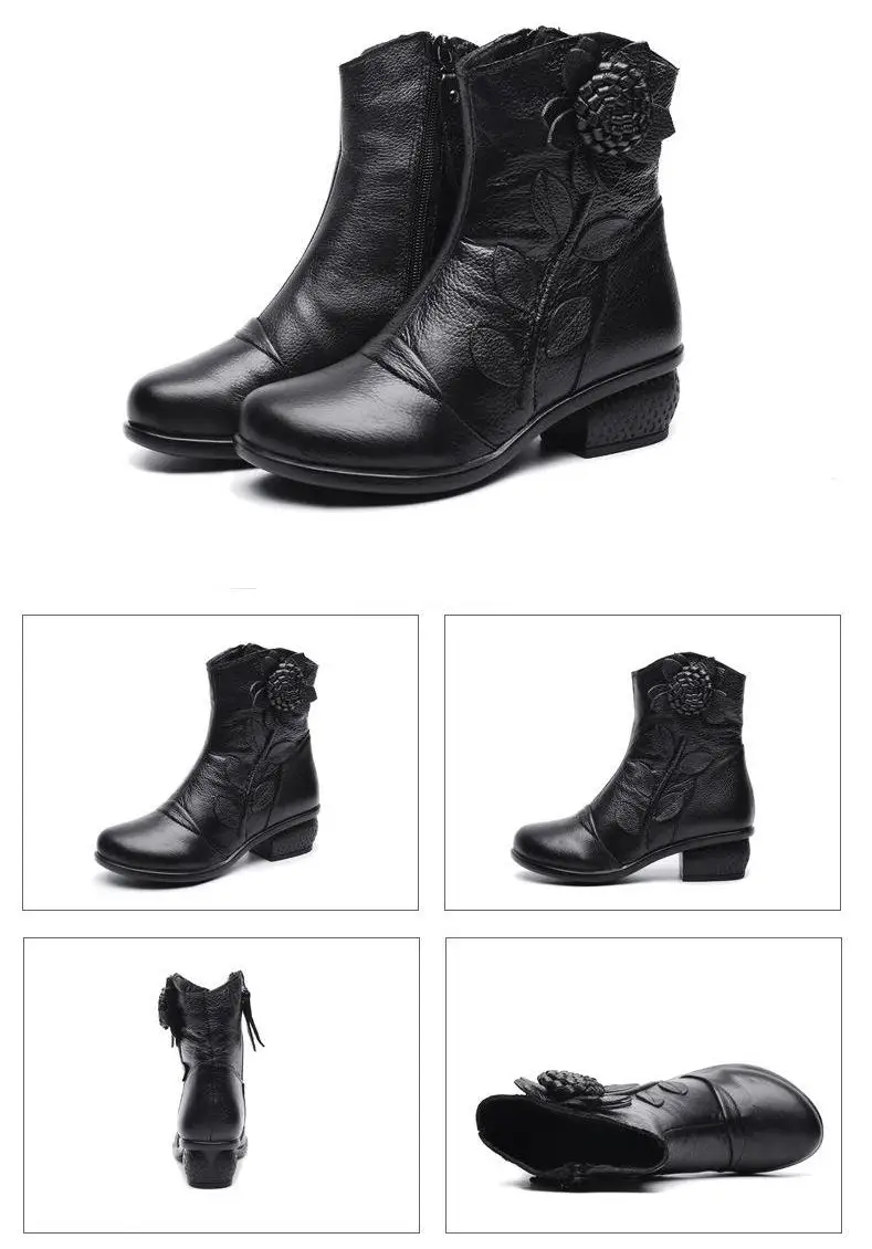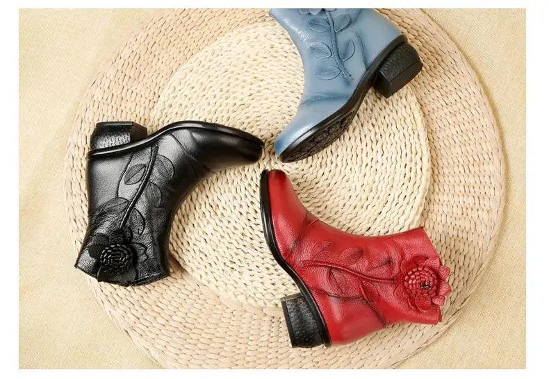 Обувь на платформе из натуральной кожи; Новинка 2019 года; сезон осень-зима; женская обувь на молнии с круглым носком; ботильоны с вышитыми цветами для отдыха