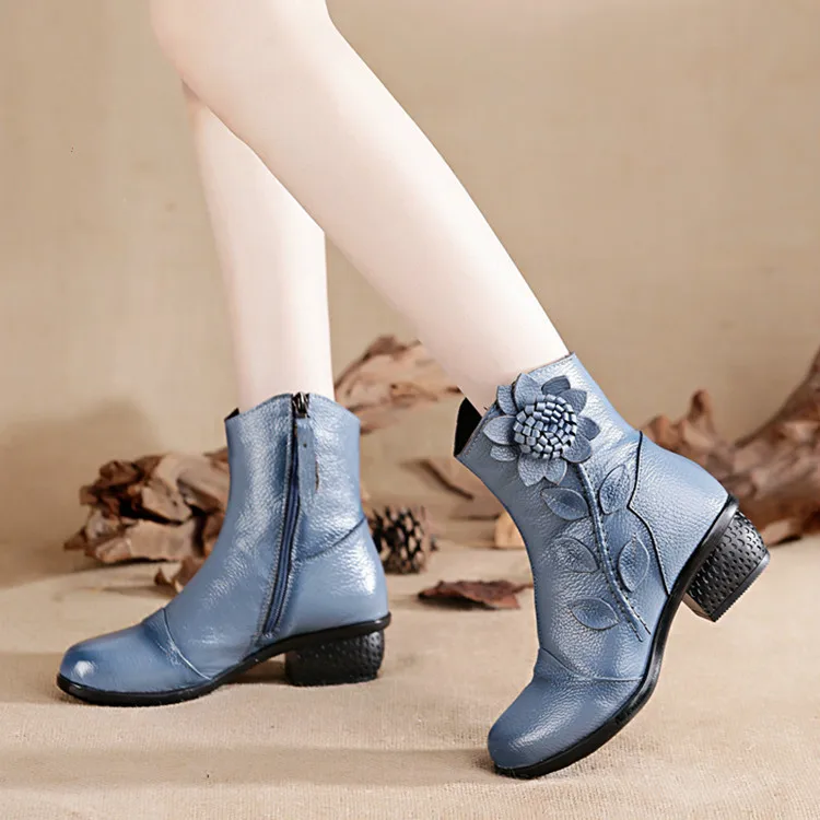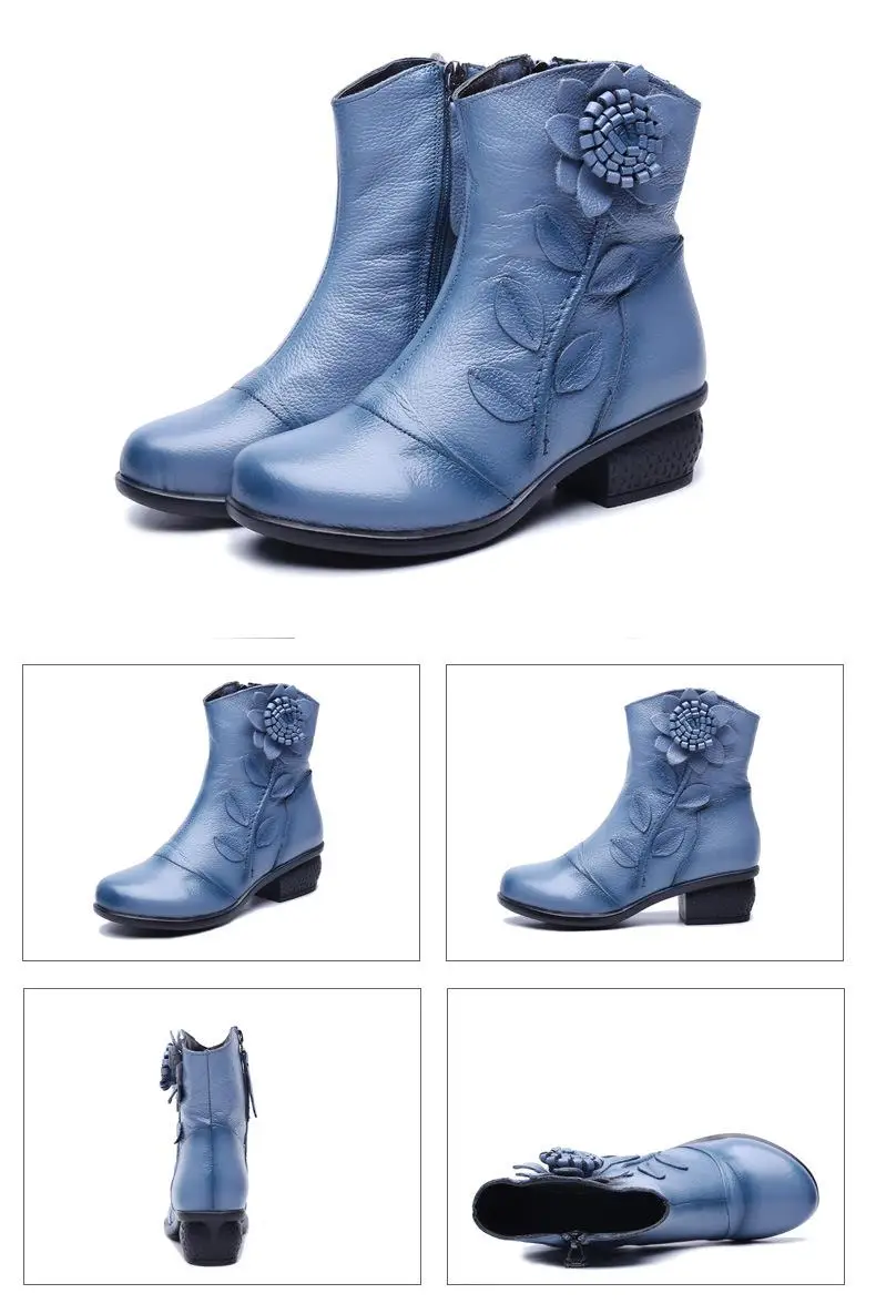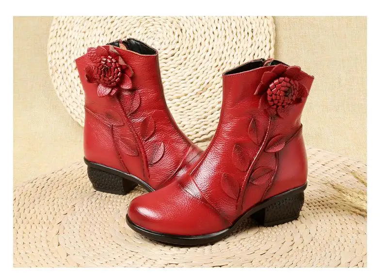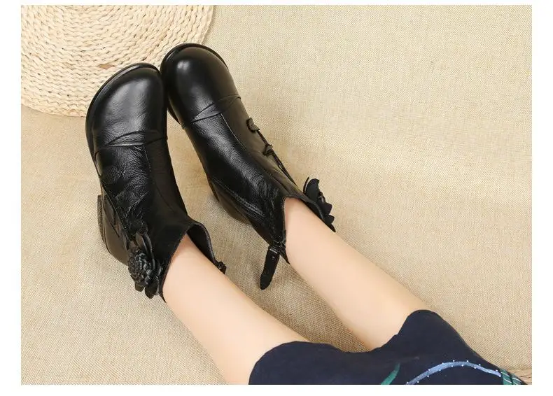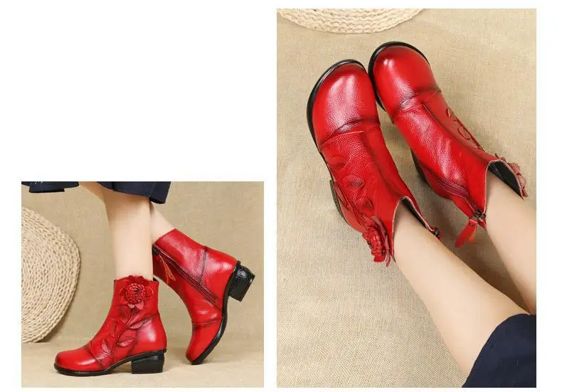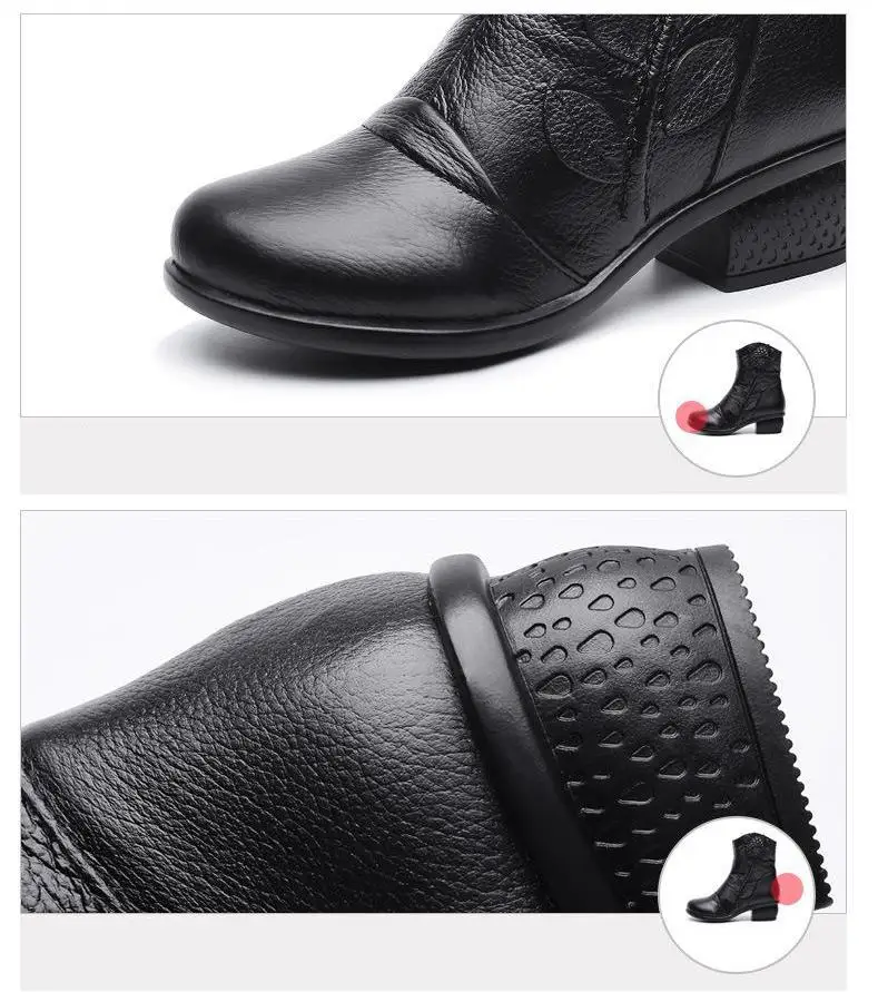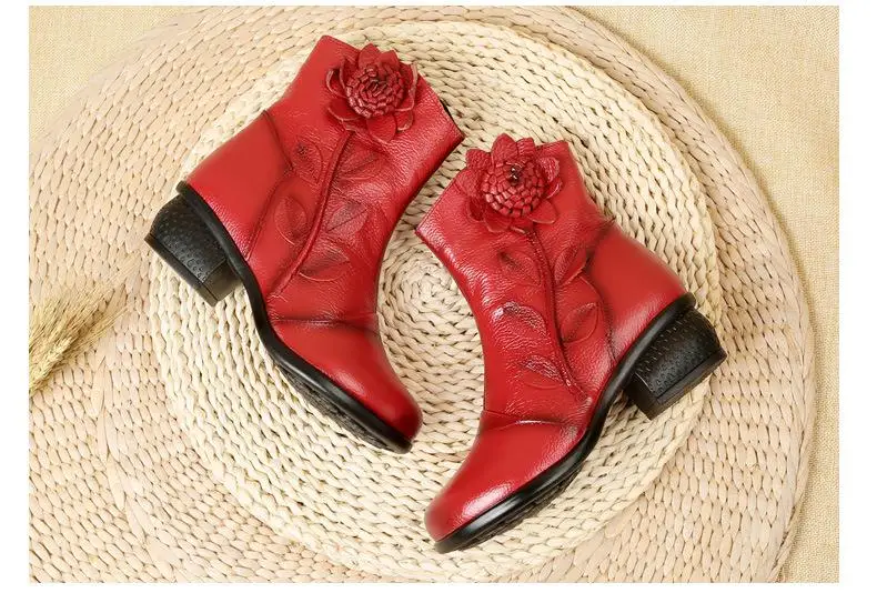 Обувь на платформе из натуральной кожи; Новинка 2019 года; сезон осень-зима; женская обувь на молнии с круглым носком; ботильоны с вышитыми цветами для отдыха