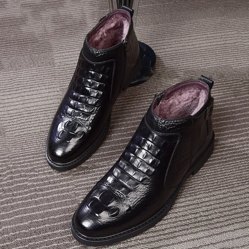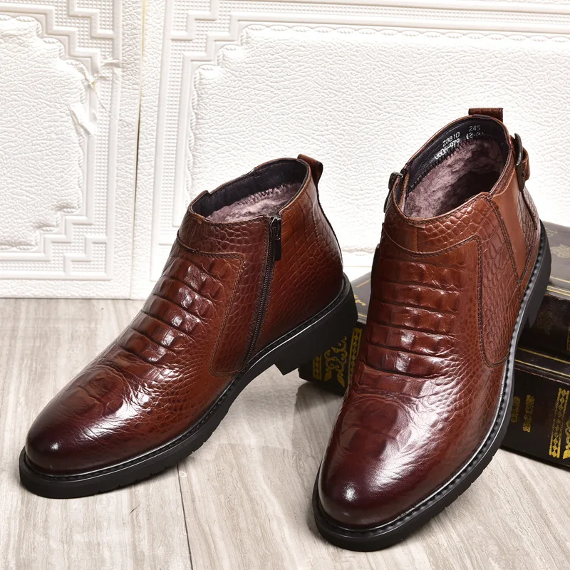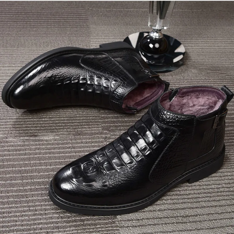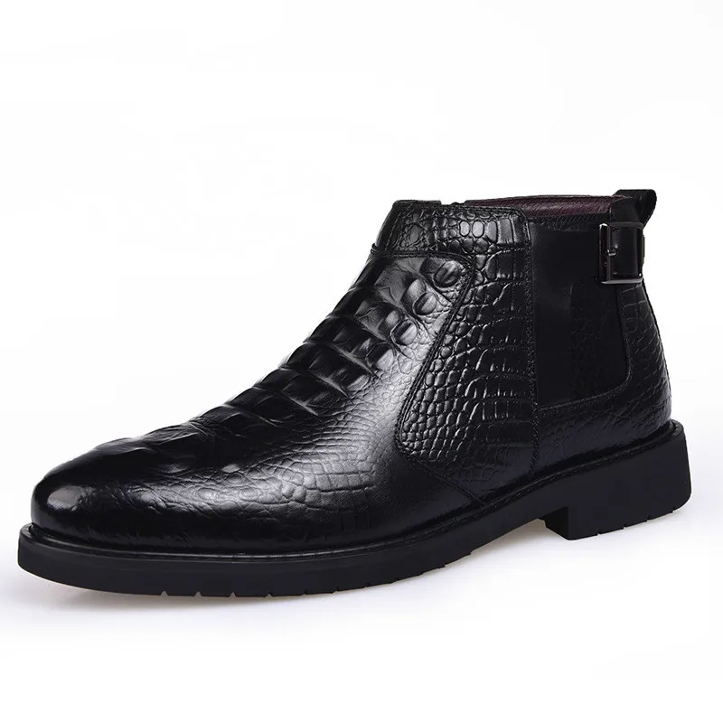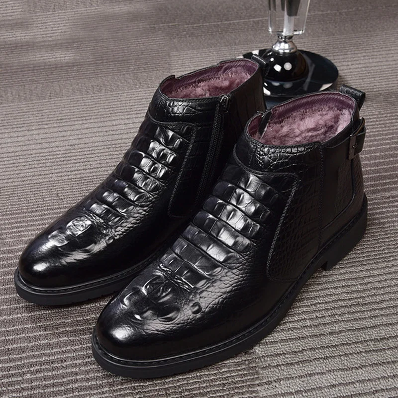Мужские Водонепроницаемые ботинки из натуральной коровьей кожи, с крокодиловой текстурой
