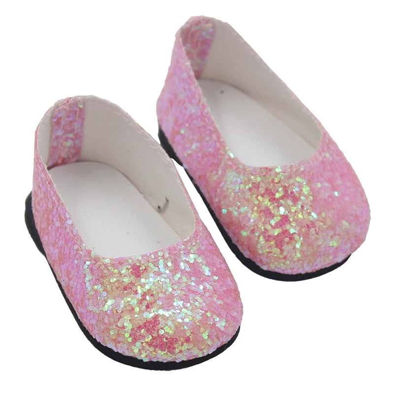 Кукольная обувь из ПУ с блестками размером 7 см, 6 цветов, подходит для кукол-малышей 43 см, дешевая обувь для 18-дюймовых кукол для девочек и мальчиков, игрушек сделай сам