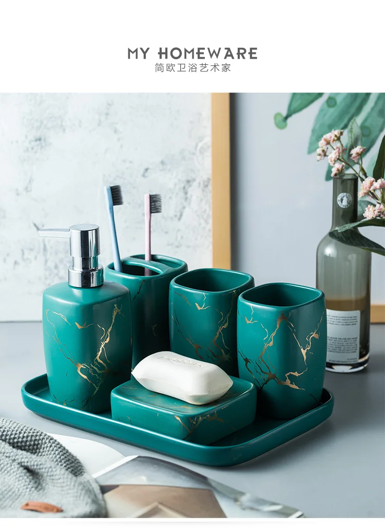 Набор аксессуаров для ванной комнаты из керамики и мрамора