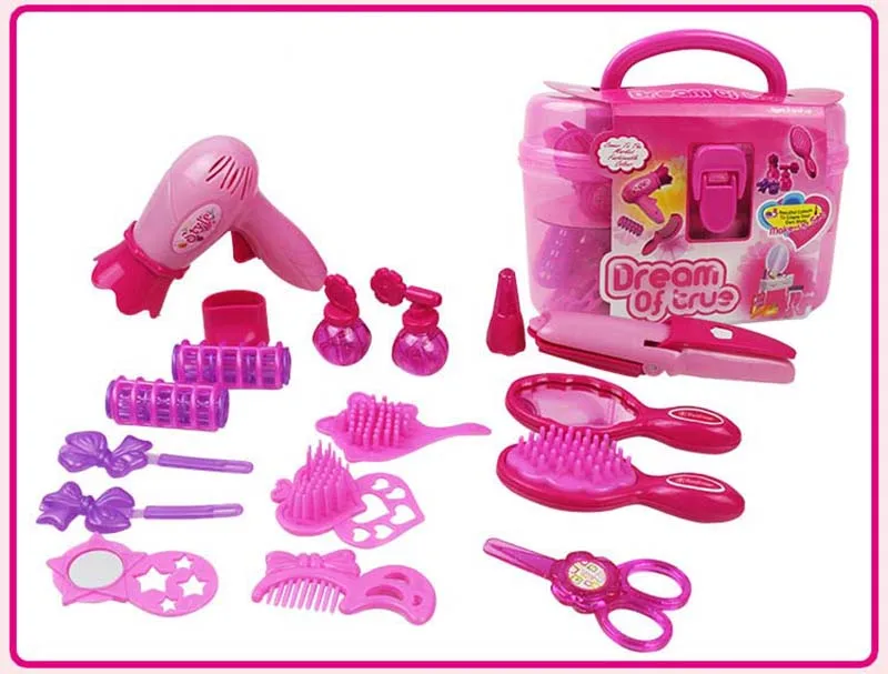 Детские ролевые игрушки для макияжа, набор для макияжа, имитация парикмахерской, пластиковая игрушка для девочек, Туалетная косметика, дорожная коробка