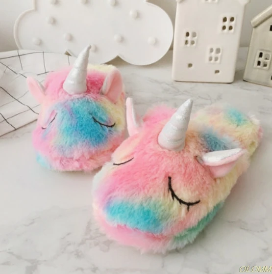 Тапочки женские зимние из плюша, с единорогом, водонепроницаемые, Нескользящие, разноцветные, 2021