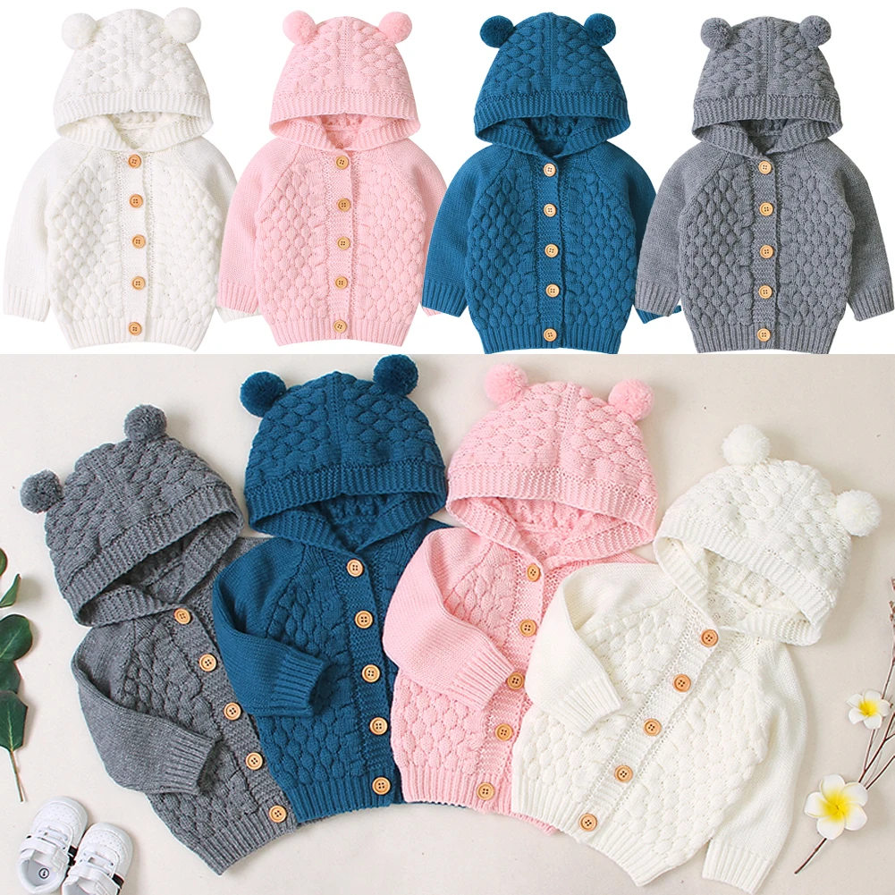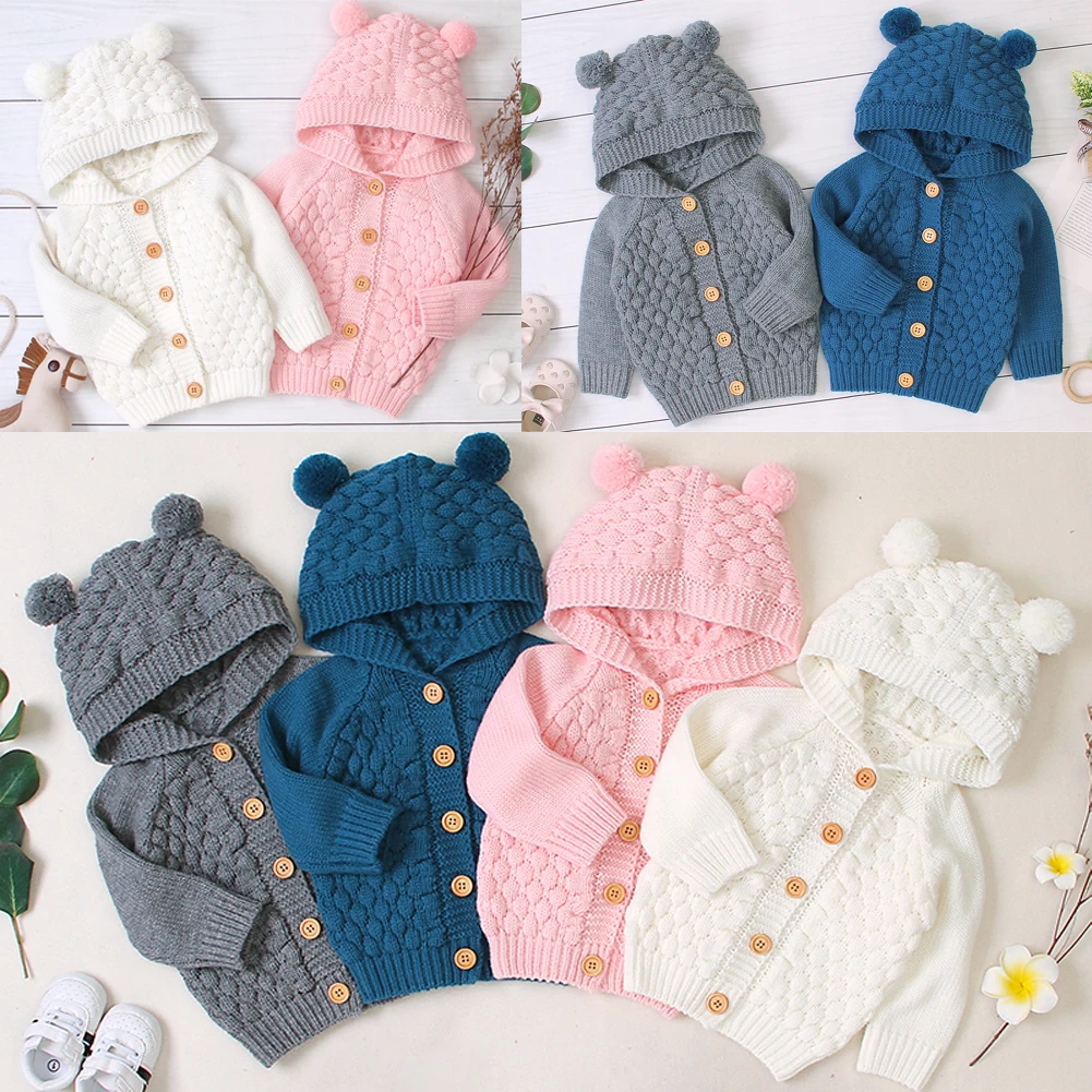 Теплый вязаный свитер с капюшоном для маленьких мальчиков и девочек