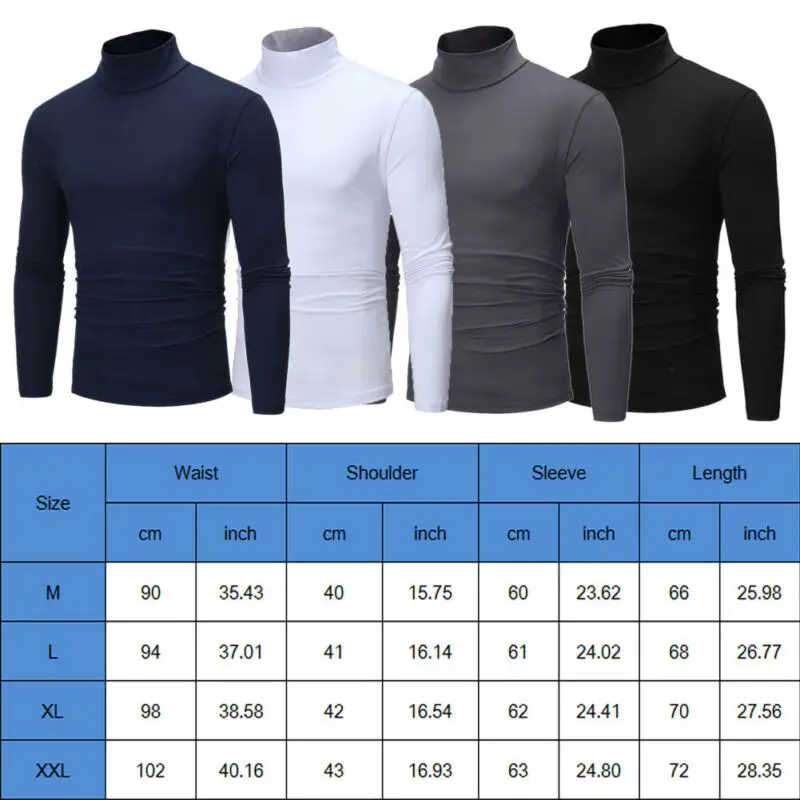Новые модные мужские хлопковые водолазки с высоким воротом, эластичные Рубашки, Топы размера плюс