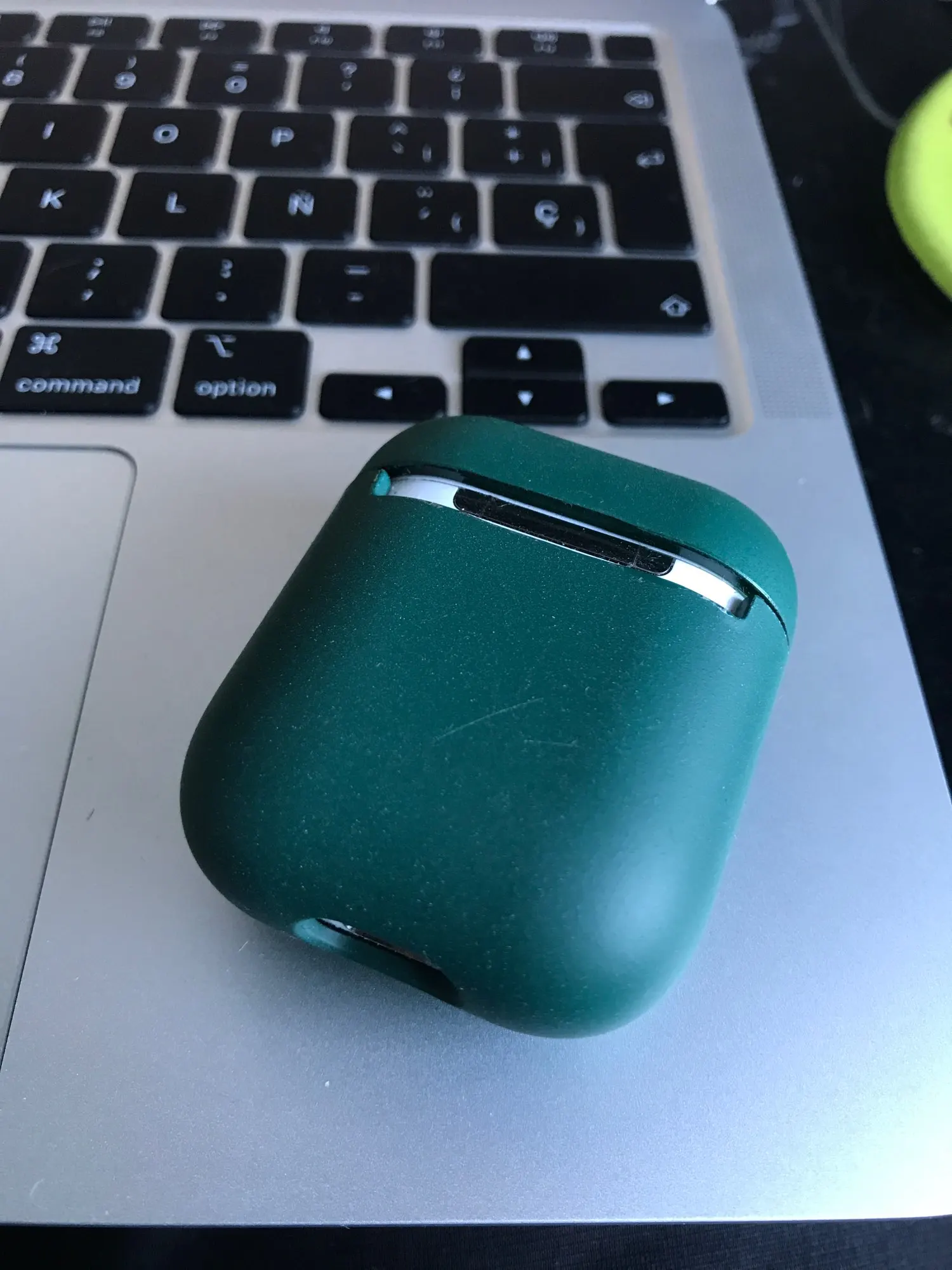 Carcasa dura que protege bastante bien la funda de los Airpods. Además, el tacto es suave