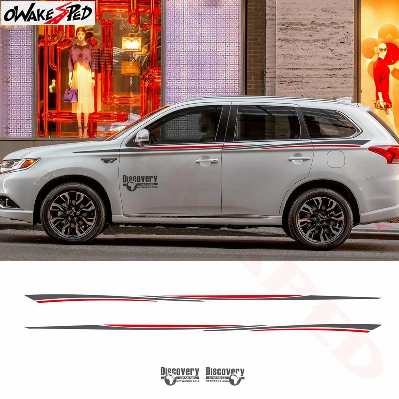 Автомобильная Спортивная наклейка в полоску, автомобильная дверь, декор для талии, наклейки для Mitsubishi Outlander PHEV, Виниловая наклейка для кузова