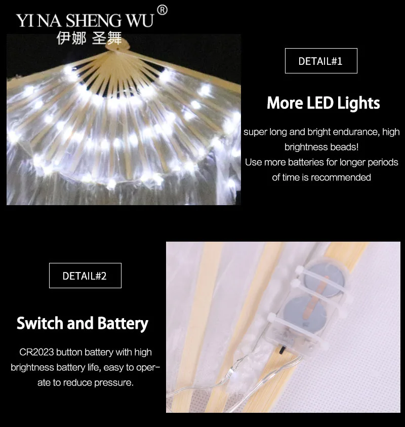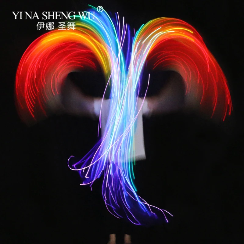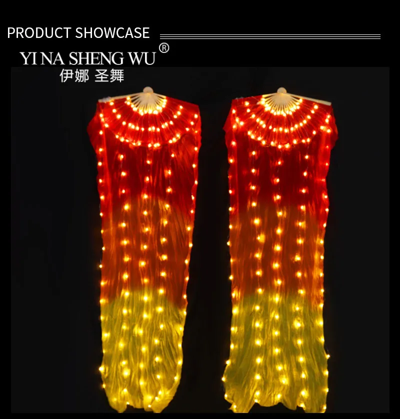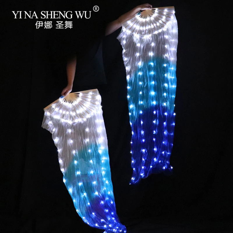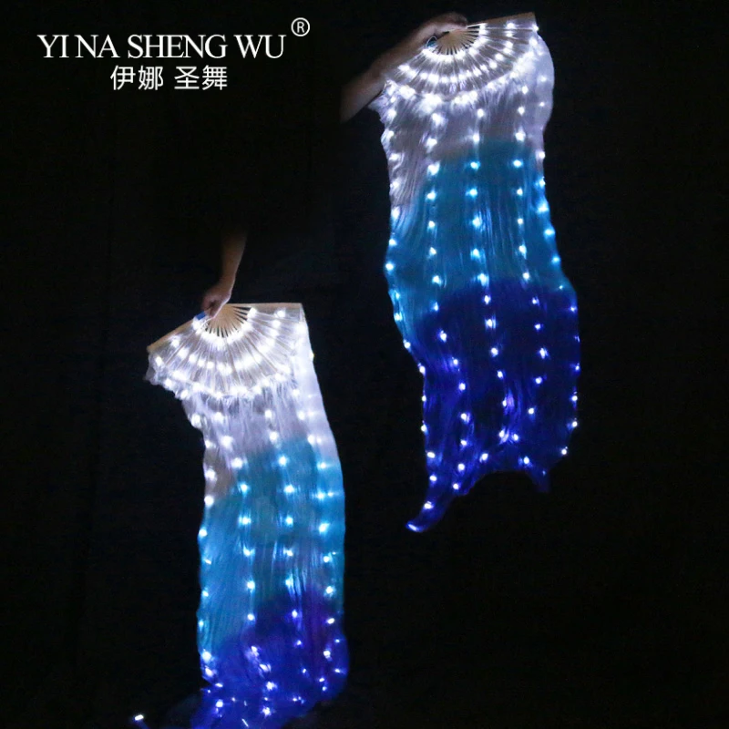 Шелковые светодиодный вееры для танца живота, реквизит для сцены и представлений, 180 х90 см, разноцветные радужные вееры для танцев, 300 светодиосветодиодный, 1 шт.1 пара