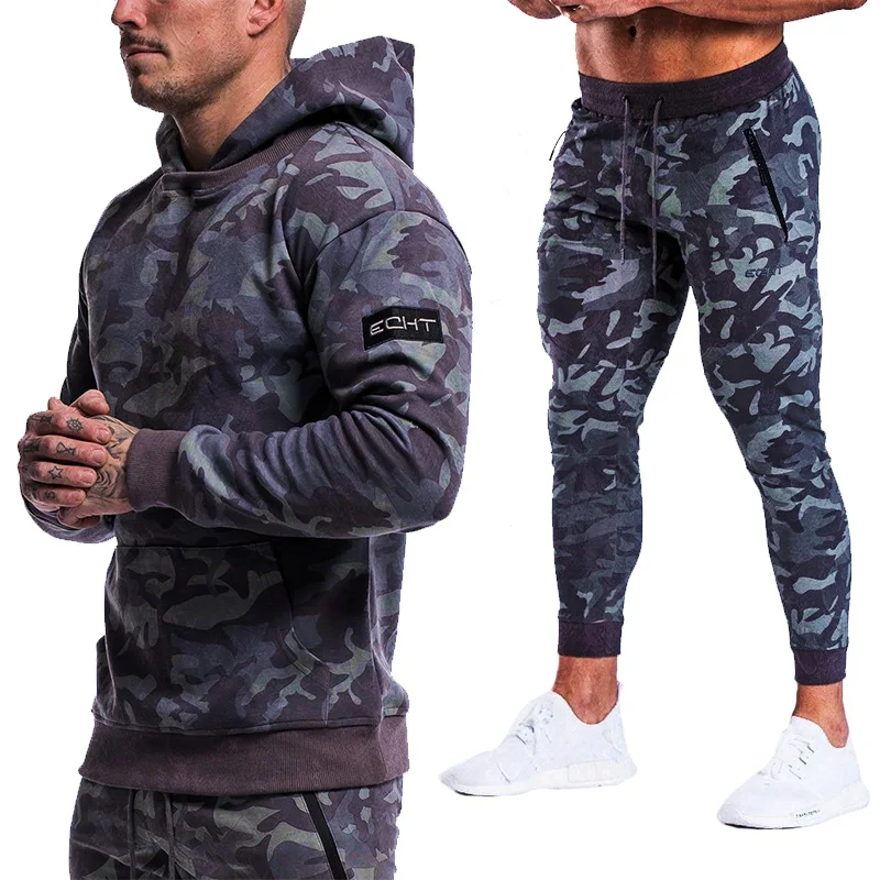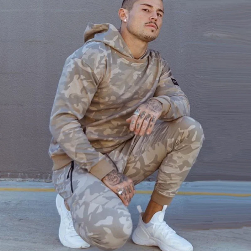 Костюм спортивный мужской Камуфляжный, толстовка с капюшоном и штаны, спортивная одежда