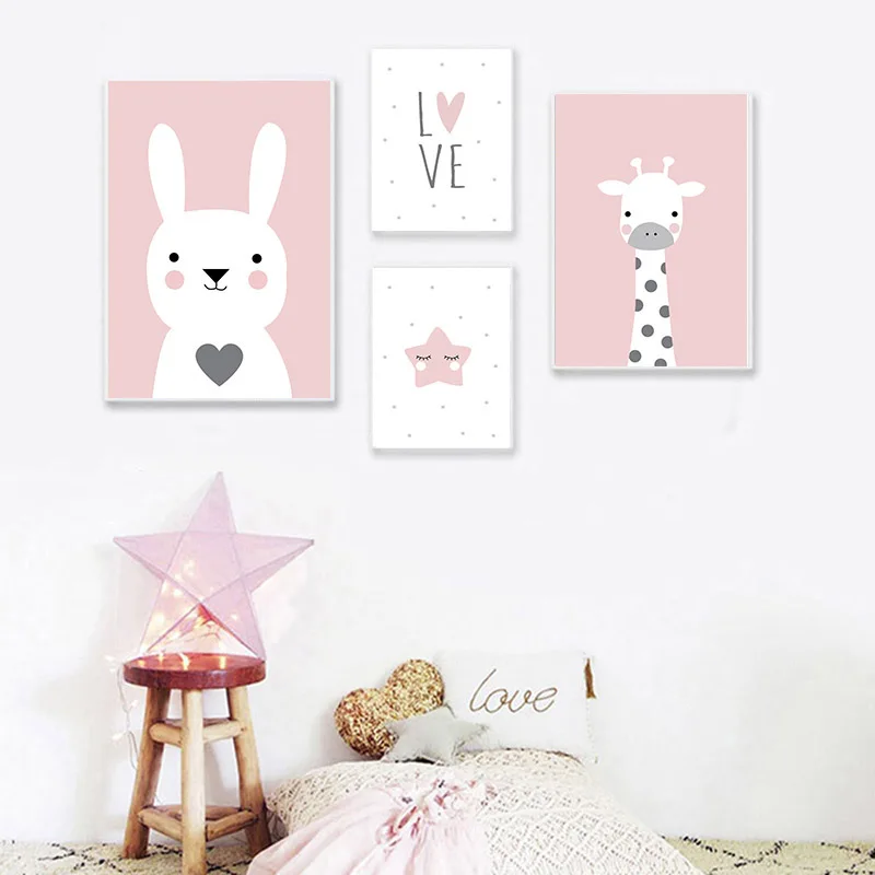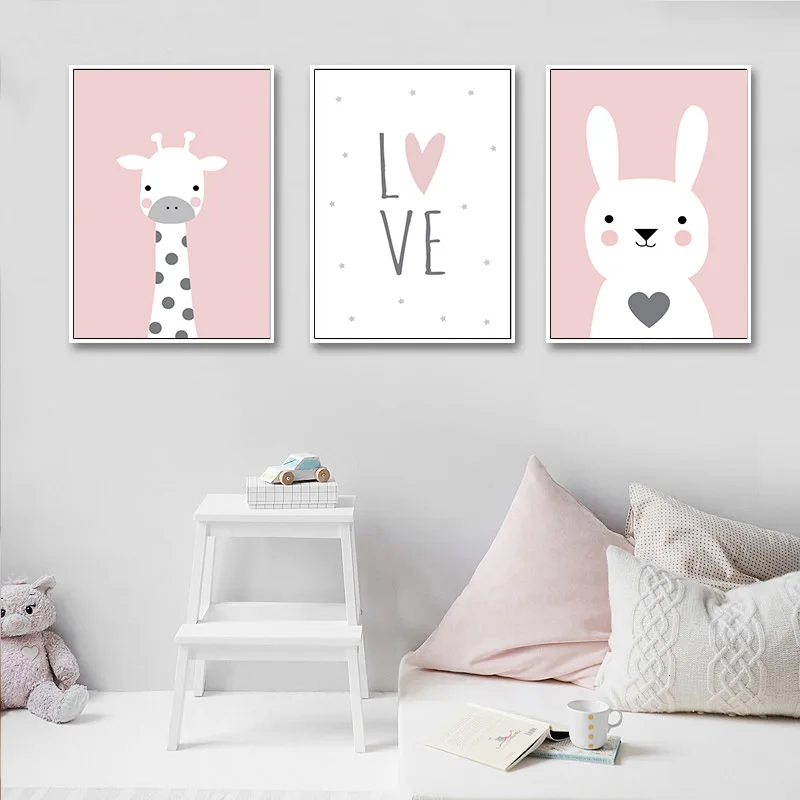 Картина с жирафом, Кроликом, слоном, детская, плакат для детской