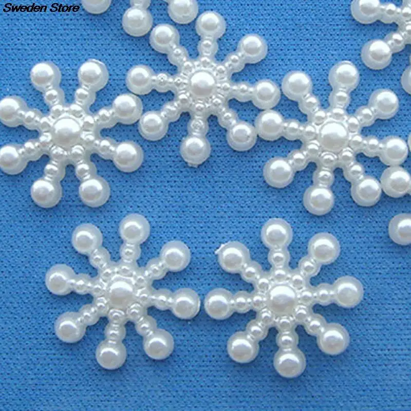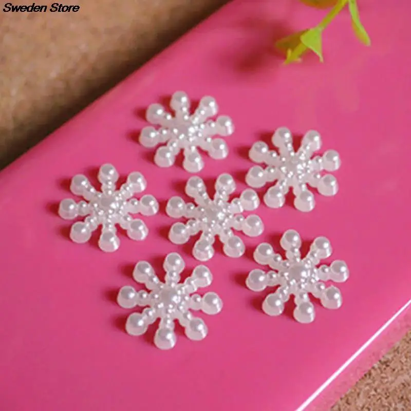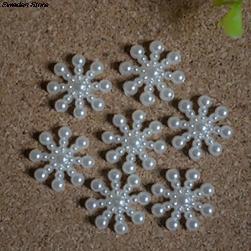 100 шт.лот, белая Снежинка для рукоделия, искусственный жемчуг с пл...