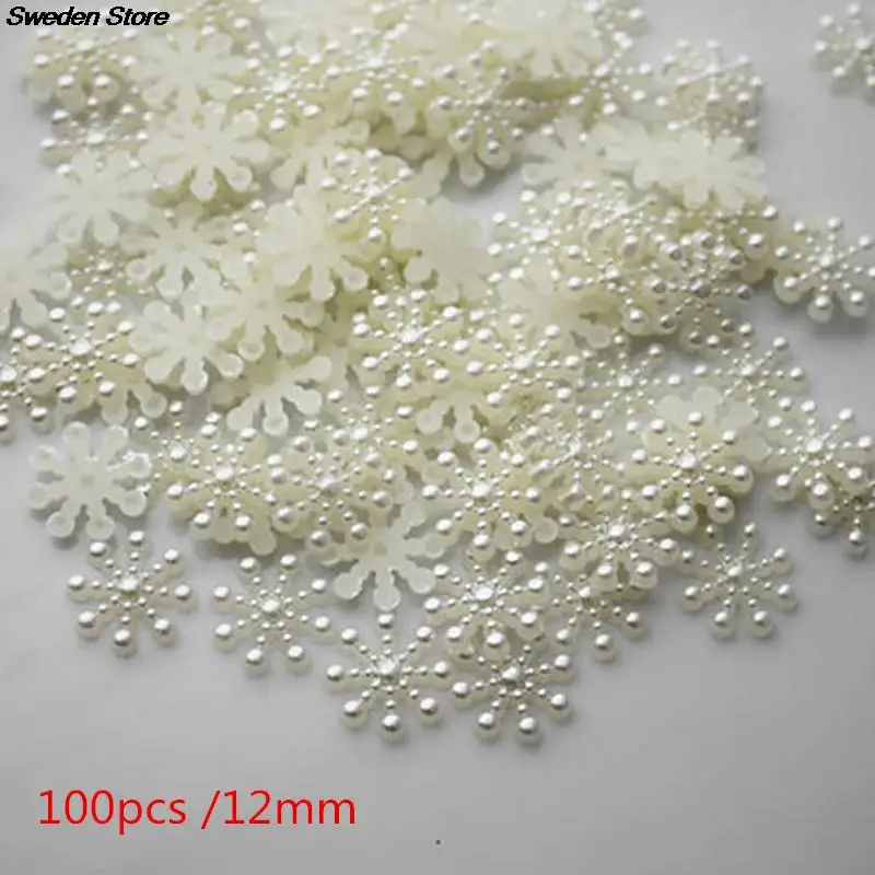 100 шт. 12 мм белые жемчужные полимерные снежинки с плоской спинкой...