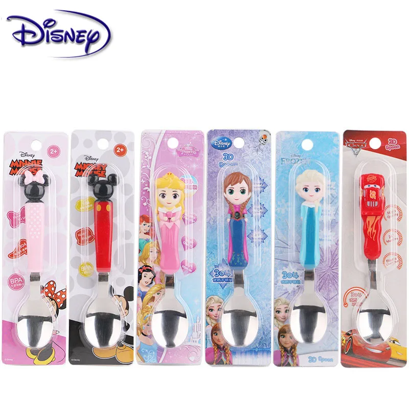 Детская Ложка Минни из нержавеющей стали с мультяшными персонажами Disney, детская посуда, посуда для кормления ребенка, посуда в стиле принцессы