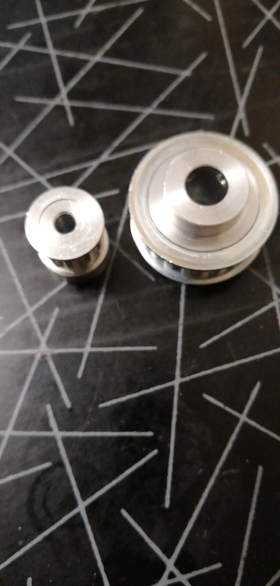 Все хорошо. Подшипники в кронштейн входят с натягом, давил тисами. Вал в подшипниках не болтается. На большой шестерне 20 зубов, на малой - 10. Межцентровое шкивов при натянутом ремне 121 мм.