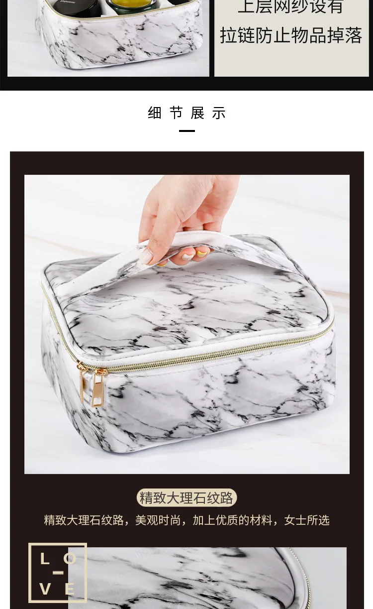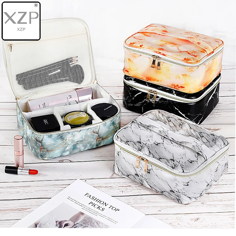 Косметичка XZP с мраморным узором, Женский чехол для макияжа, губная помада, Несессер для туалетных принадлежностей, косметичка, большая емкость