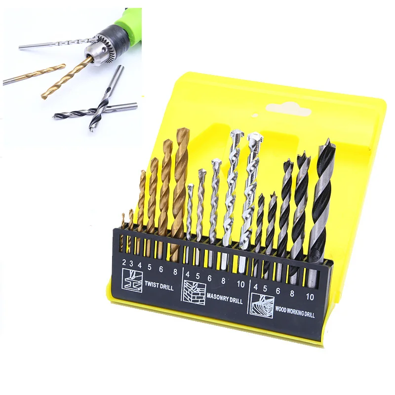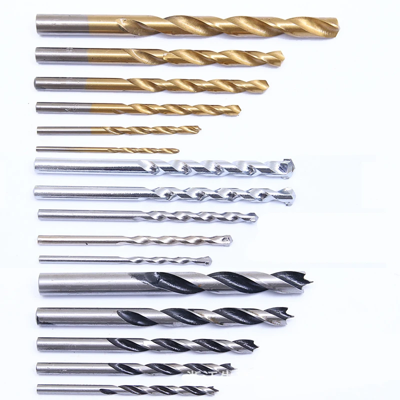 Набор из 16 комбинированных сверл HSS, титановые спиральные дрели для металла + сверла по дереву + набор сверл по металлу