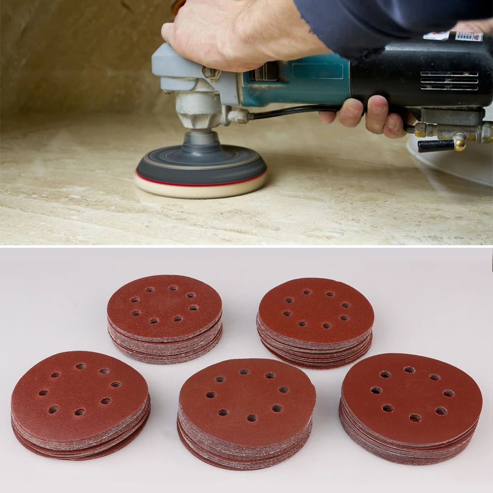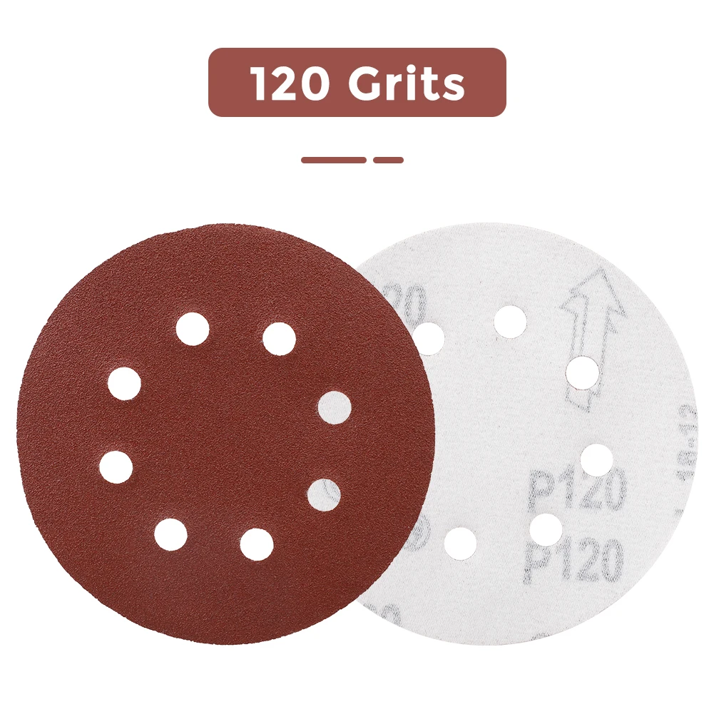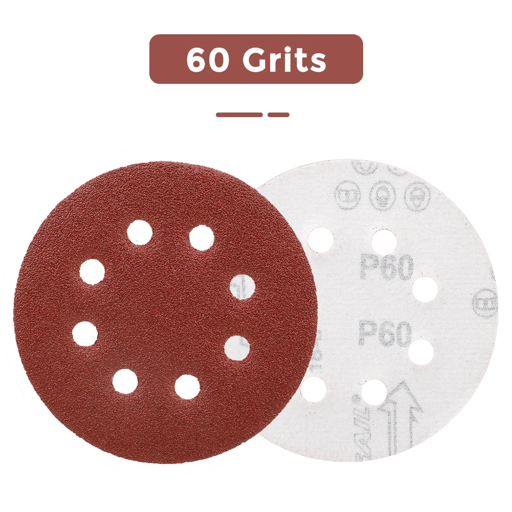 Абразивные шлифовальные диски, 30 шт., 5 дюймов, 8 отверстий, полировальные диски, 5 дюймов, 125 мм, круглая Песочная бумага, восемь отверстий, 60120240 зернистая Песочная бумага