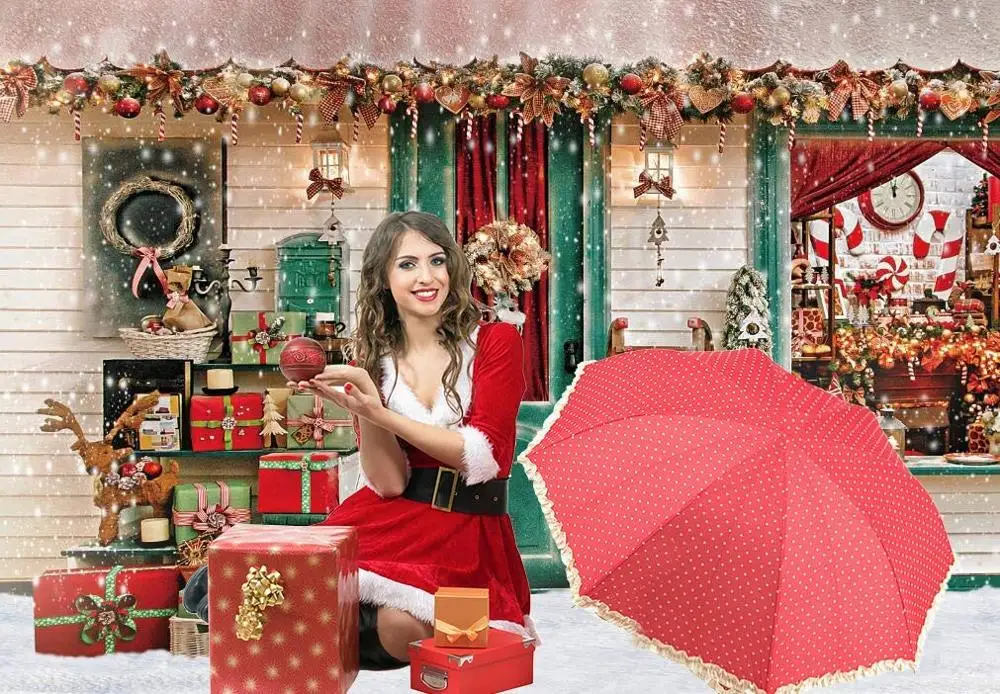 Фон для фотосъемки зима Рождество Снежная витрина коттедж украшения фон детский портрет Фотофон фото студия
