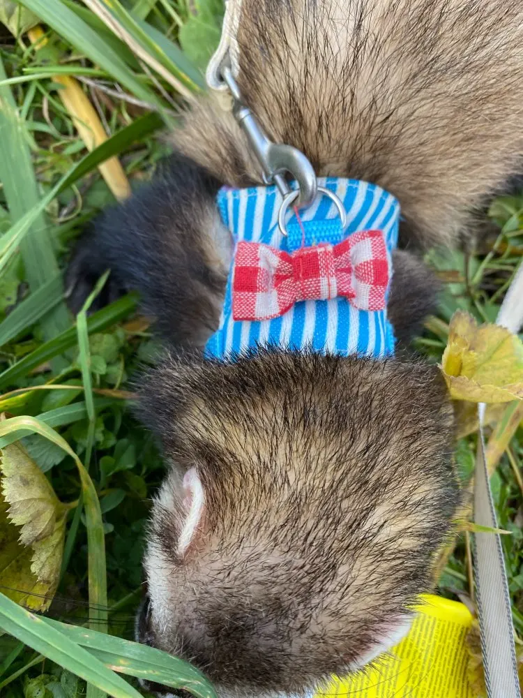 качество среднее, на шее хорьку хорошо, а вот на пузе большой. придется ушивать