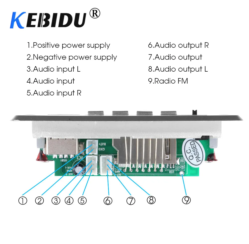 Плата декодирования Kebidu Bluetooth 5,0 MP3, беспроводной Автомобильный USB MP3-плеер со слотом для tf-картыUSBFMпульт дистанционного декодирования