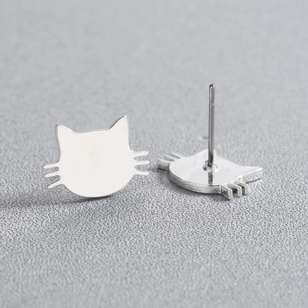 Милые серьги-гвоздики в виде кошки QIAMNI из нержавеющей стали, под...