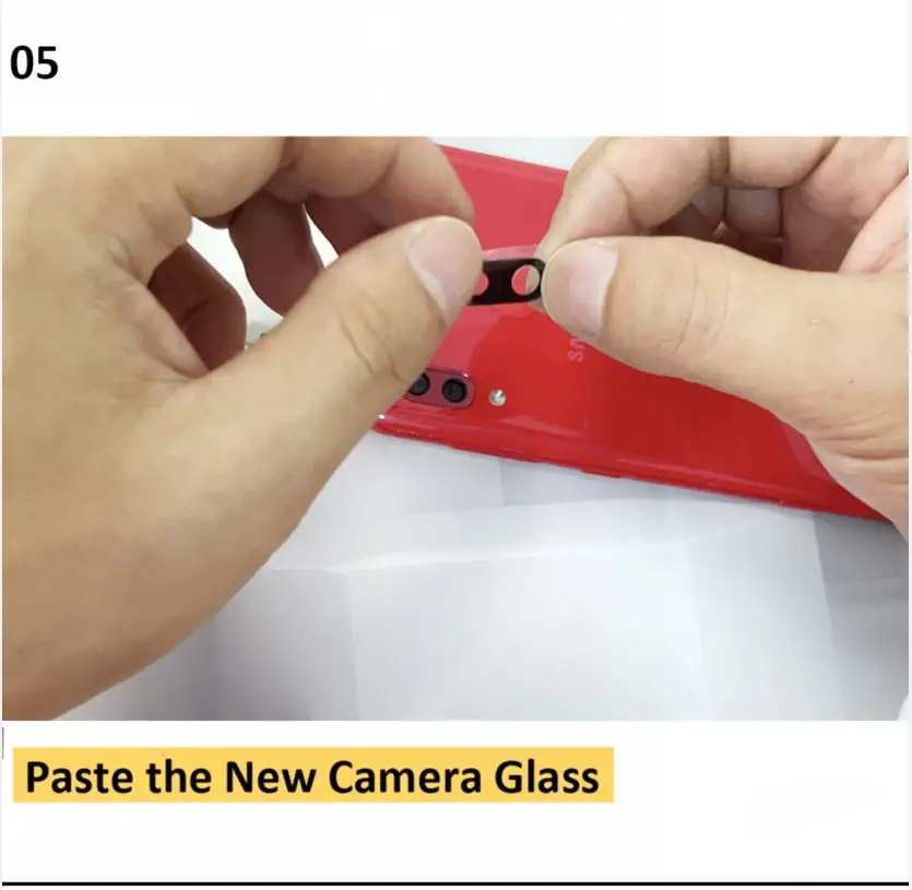 1. Нагрейте стекло камеры; Нанесите клей (Примечание: Не нагревайте аккумулятор)2. Советы: будьте осторожны, чтобы не повредить камеру3. Очистка остатков glus и частиц стекла камеры