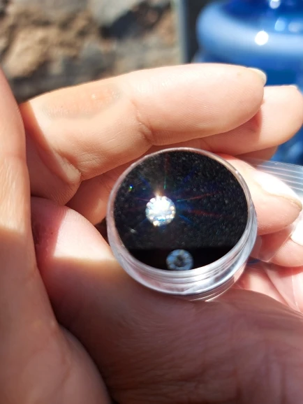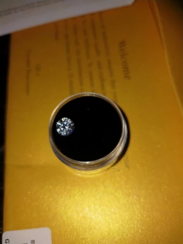 отличный камень! посылка прибыла быстро но вскрытая, муассанит не украли слава богу.сертификат на камень есть.