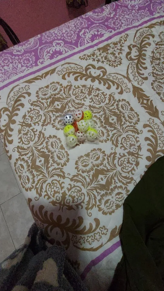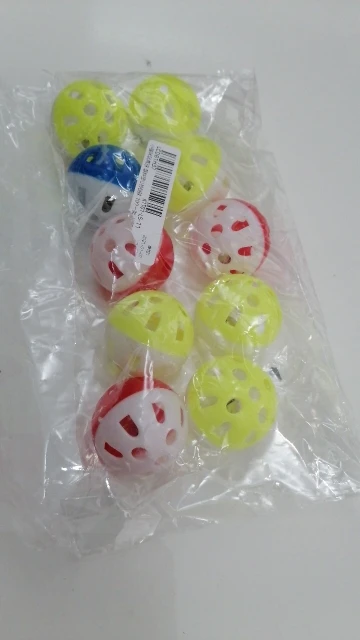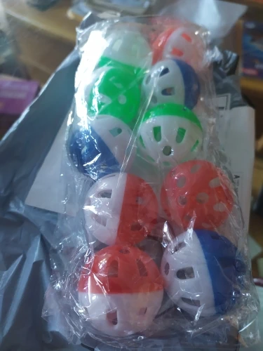 шарики хорошие, но меня не устроил цвет, три зелёных и четыре синих, я надеялась на разноцветные шары, попугай любит жёлтые, синие игнорирует