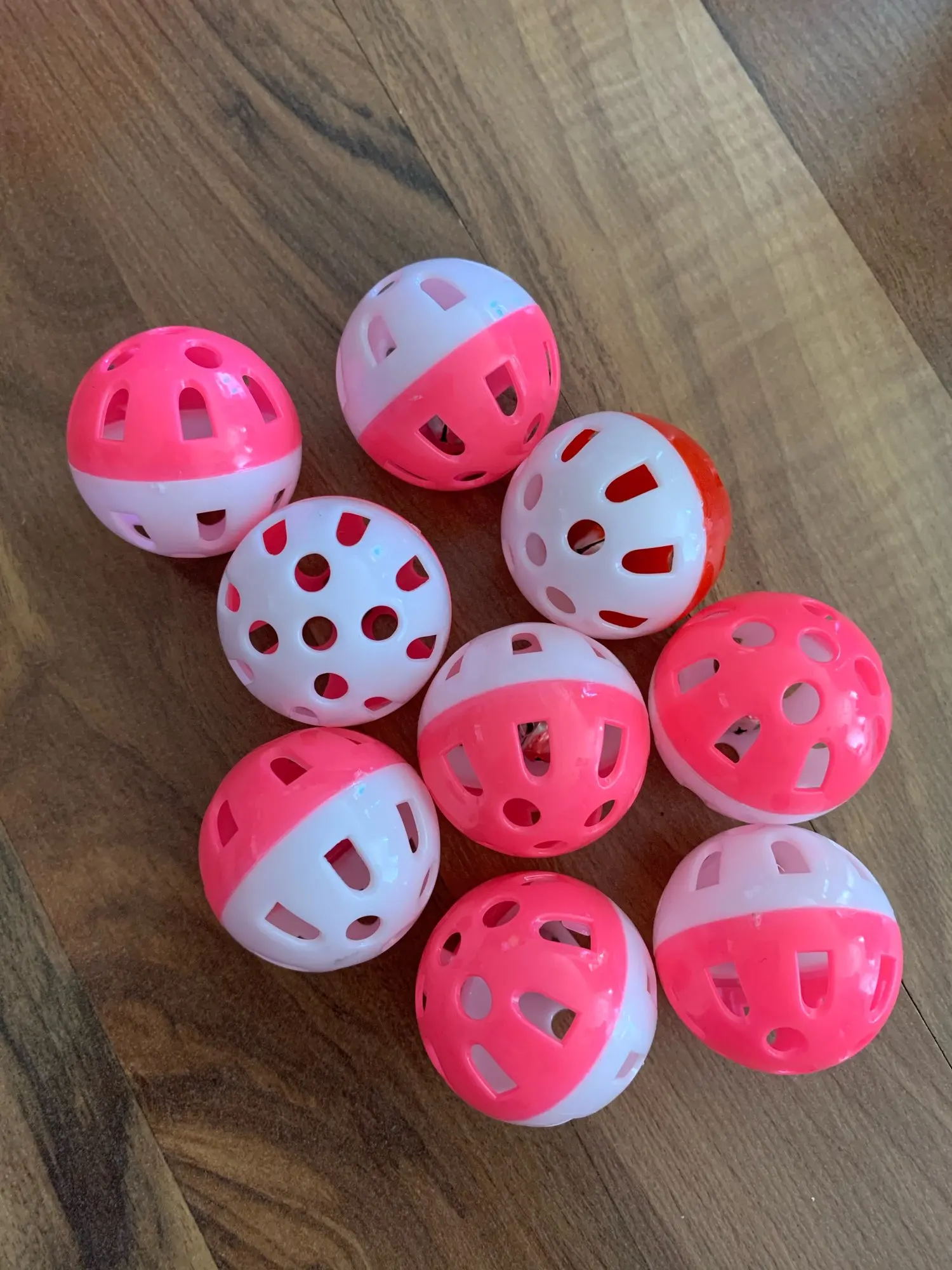 Отличные мячики, негромко звенят. Цвет пришёл бело-розовый.