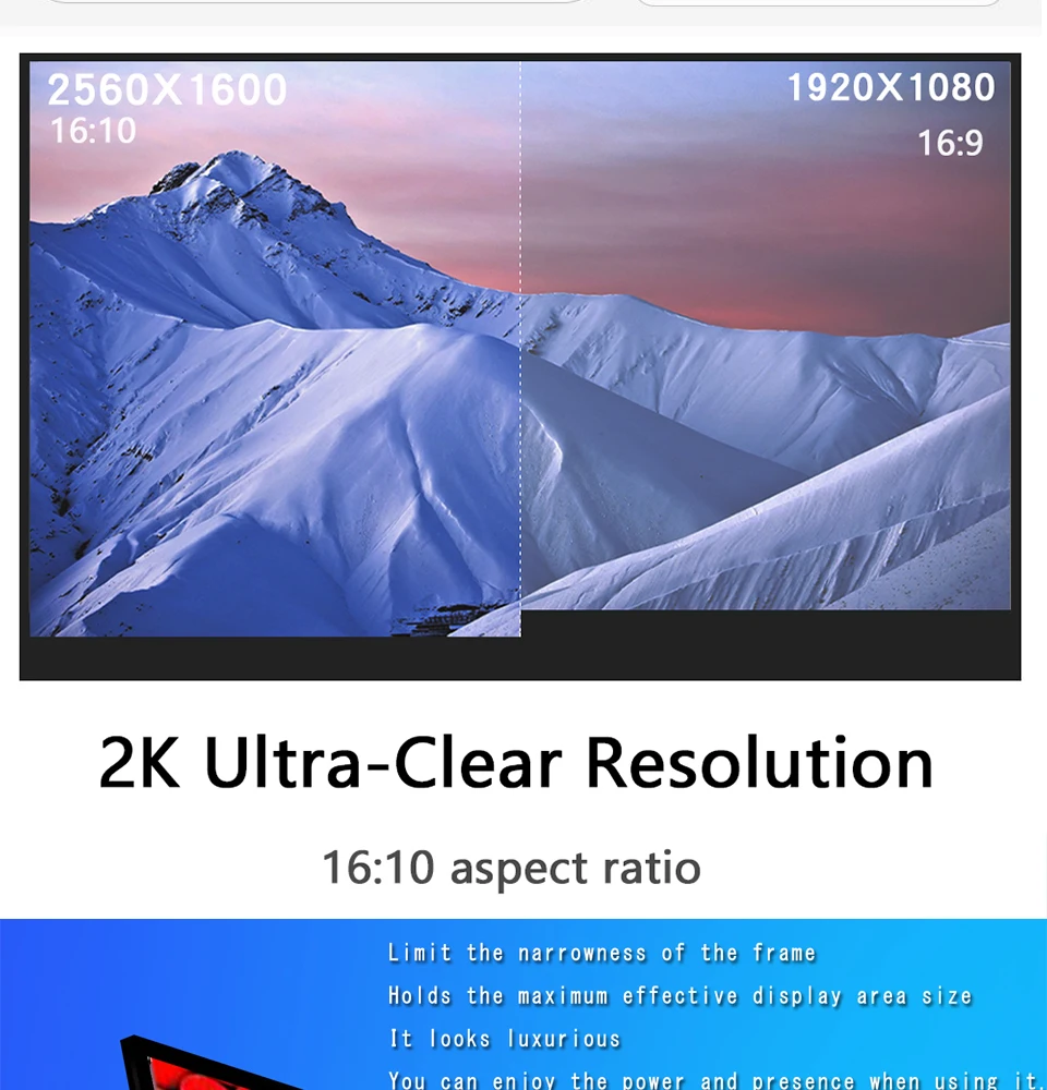 Портативный монитор 2K 16 '', ультра-прозрачный, 2560x1600 100% sRGB, монитор для ноутбука, USB C HDMI, игровой компьютер, дисплей IPS, экран для ПК, Mac