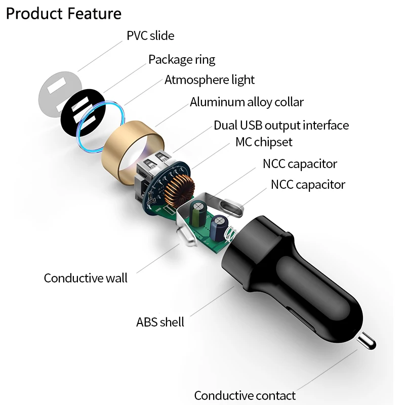 Умная система снижения температуры рассеивает тепло внутренних компонентов автомобильного зарядного устройства и сохраняет его в подходящем температурном режиме для нормальной работы и продления срока службы.