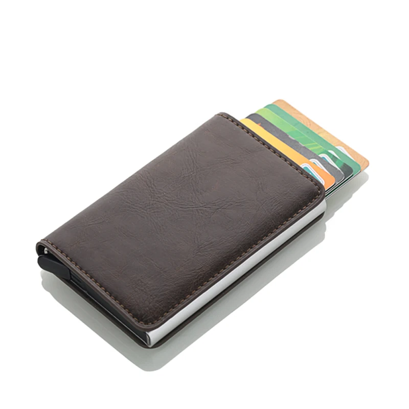 Кожаный держатель для кредитных карт для мужчин, алюминиевый автома...