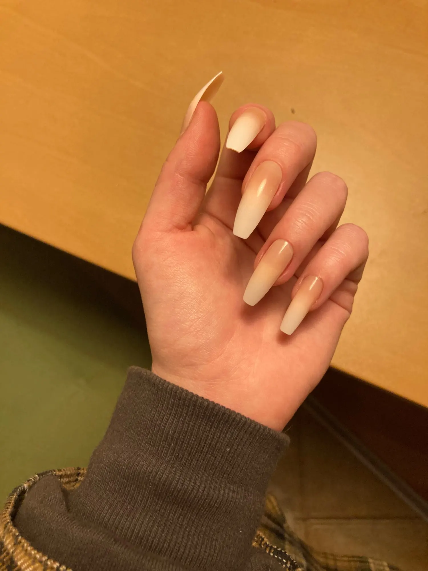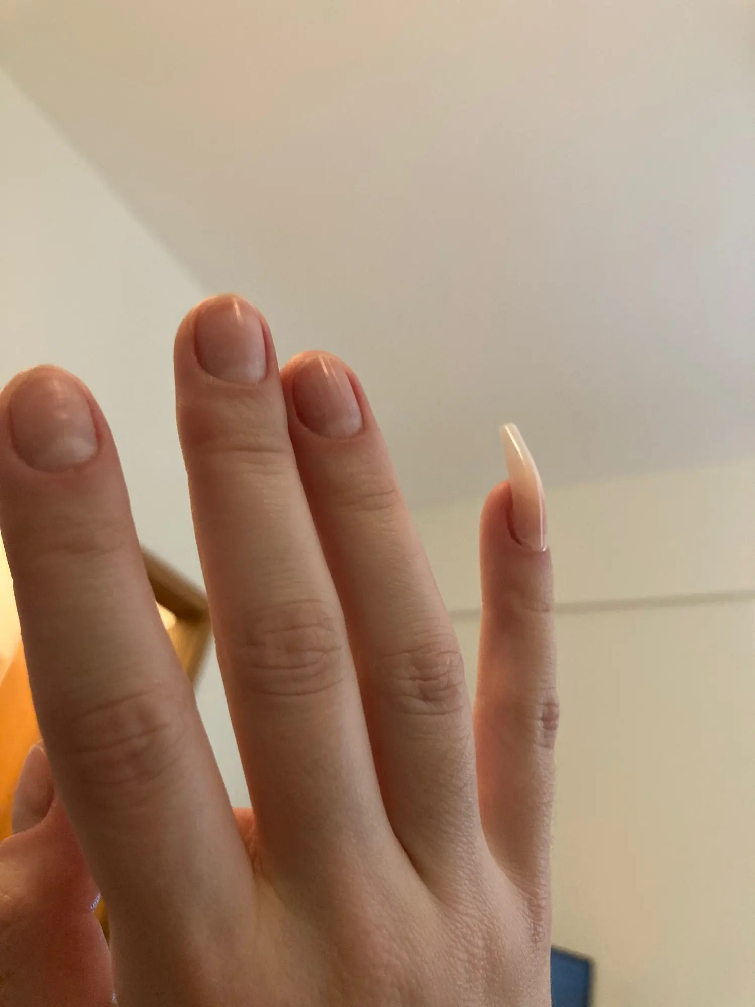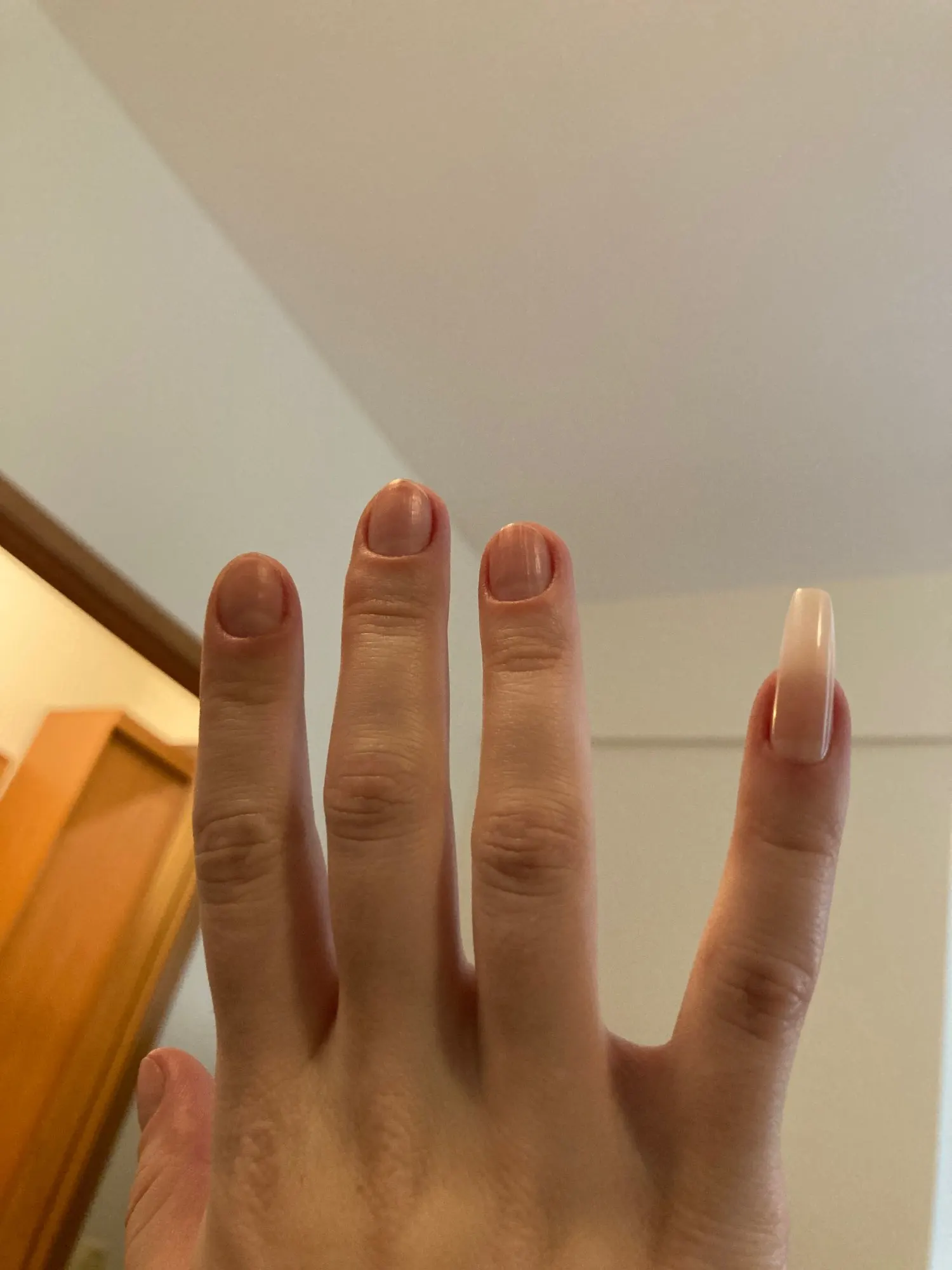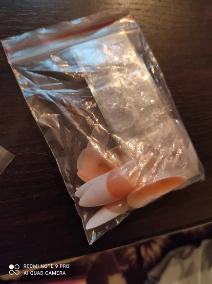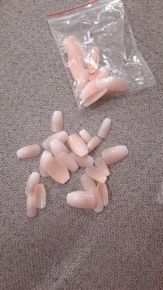 Очень плохое качество, у ногтей было много складок. Не рекомендуется. Также они не выглядят так, как на фотографиях. Это один однотонный персиковый цвет