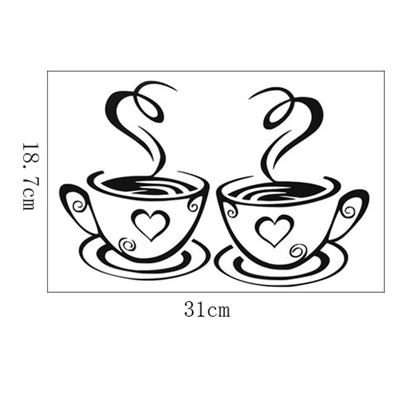 Две черные кофейные чашки, настенные наклейки для кухни, украшения ...
