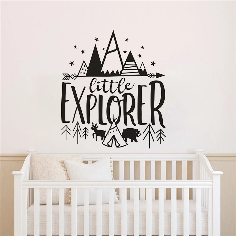 Детская комната Декор маленький Explorer дизайн настенные наклейки медведь с палатками Виниловые Настенные стикеры Детские Приключения настенные фрески Декор AZ968