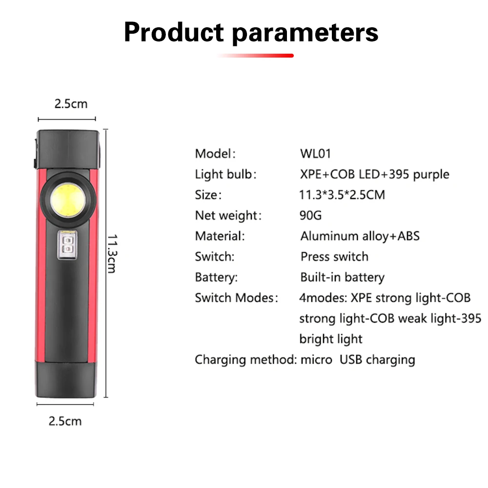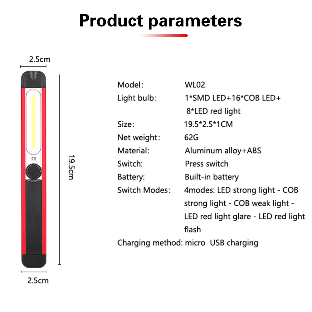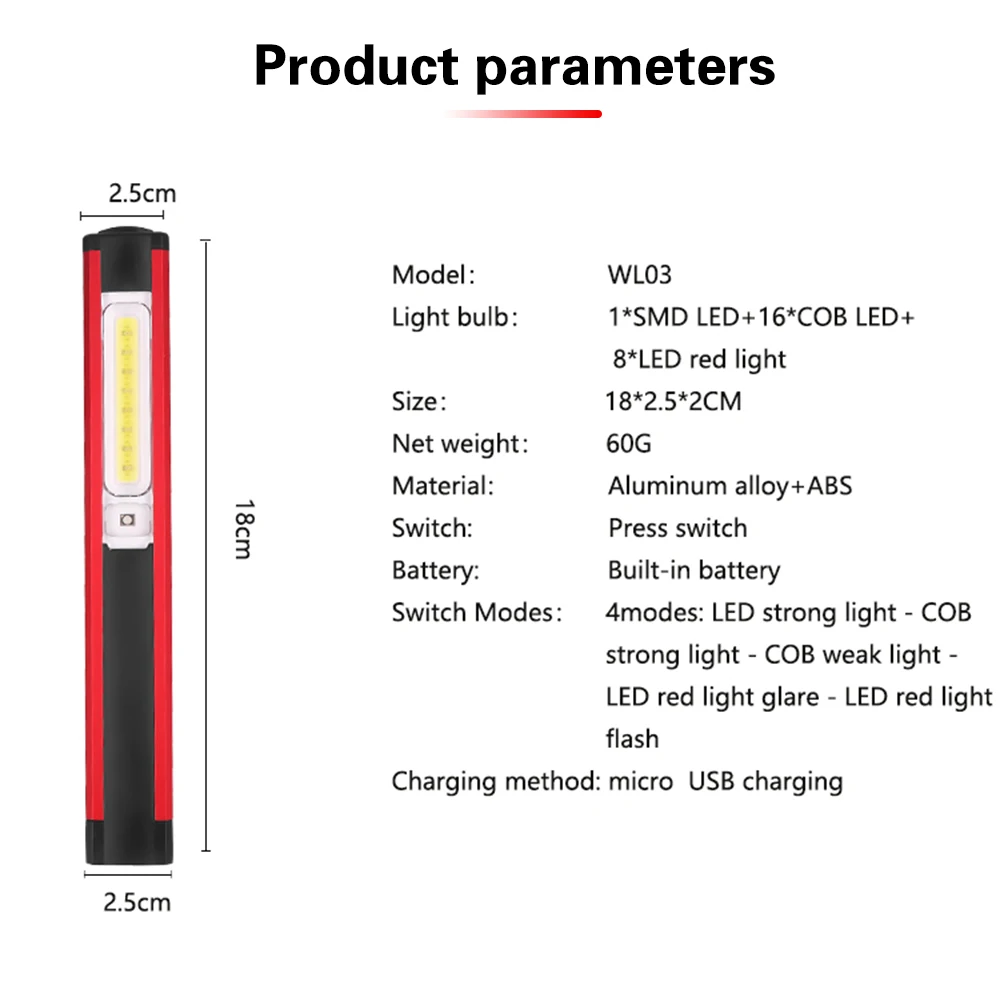 2039 COB светодиодный растягивающийся фонарь 1 Вт Светодиодный + COB светодиодный 3 режима USB зарядка рабочий свет стенсветильник свет Магнитная вспышка