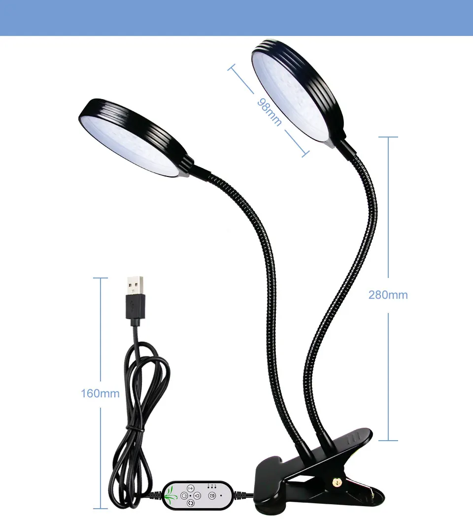 Быстрая доставка и хорошая упаковка. Все лампы работают идеально. Еще не замечал никакого влияния на растения, я буду обновлять этот обзор в будущем. Лампа поставляется с настройками таймера, также вы можете выбрать красный и фиолетовый свет (или оба вместе). Моя единственная проблема с зажимом-не достаточно большая для большинства полок
