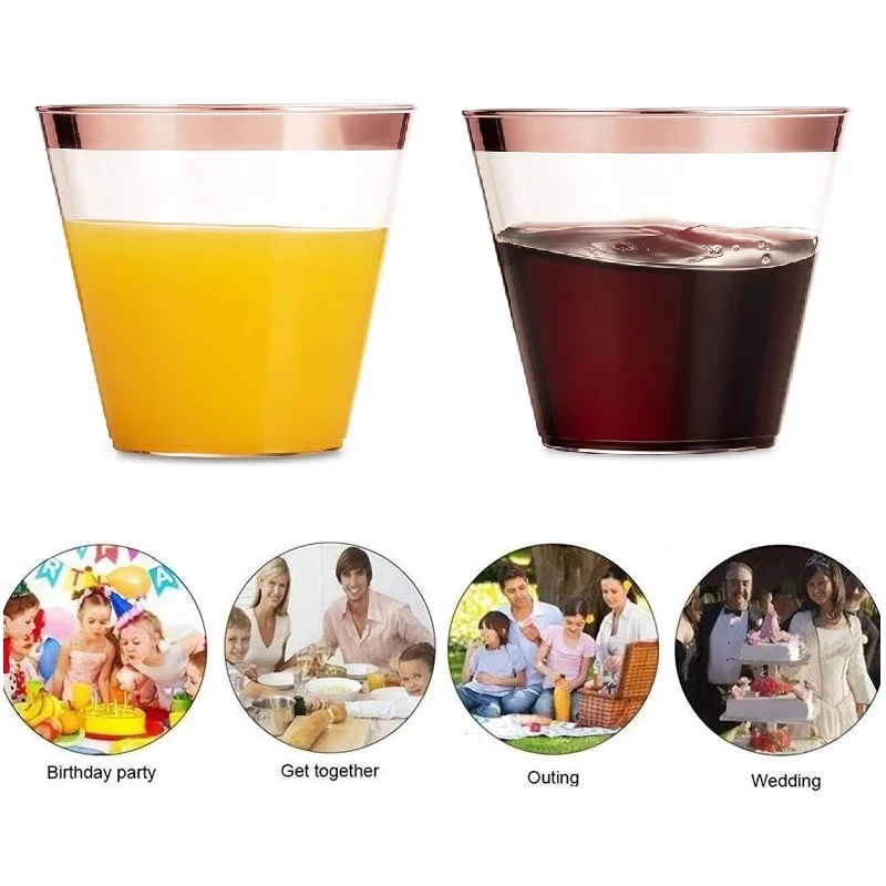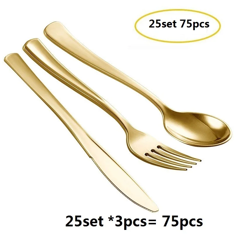 25 шт., розовое золото, одноразовая прозрачная чашка, Пластиковая Золотая тарелка, набор столовых приборов для свадебной вечеринки, путешествия, отдых, Рождество, день рождения, вечеринка, набор посуды