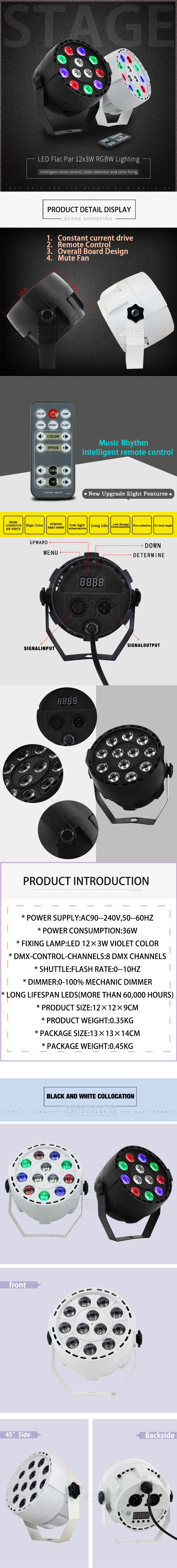 Миниатюрный светодиодный светсветильник льник SHEHDS, плоский, номинальная мощность 12x3 Вт, RGBW, 4 цвета, для диджеев вечерние, клубов, дискотек, 8 каналов, DMX 512