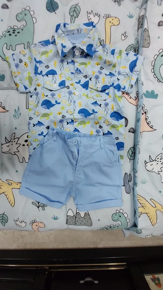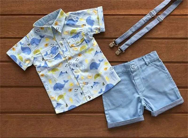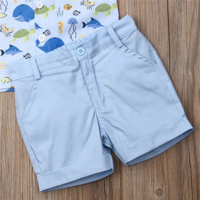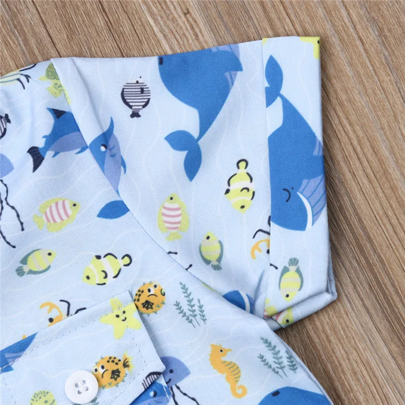 Комплект одежды для мальчиков, рубашка для мальчиков с принтом Кита, медузы, Ocean World, Детские рубашки с синими шортами, От 1 до 5 лет