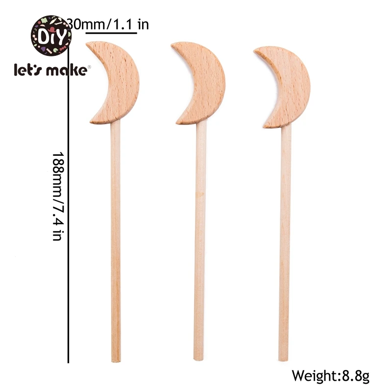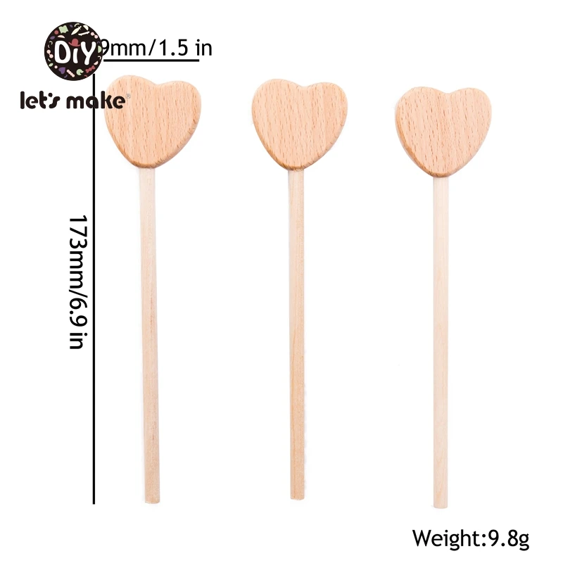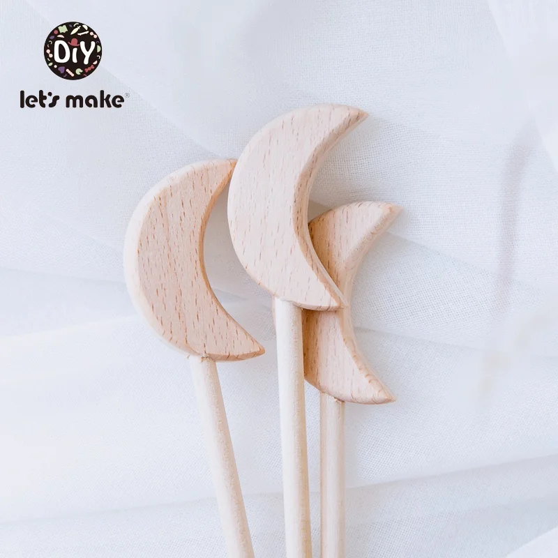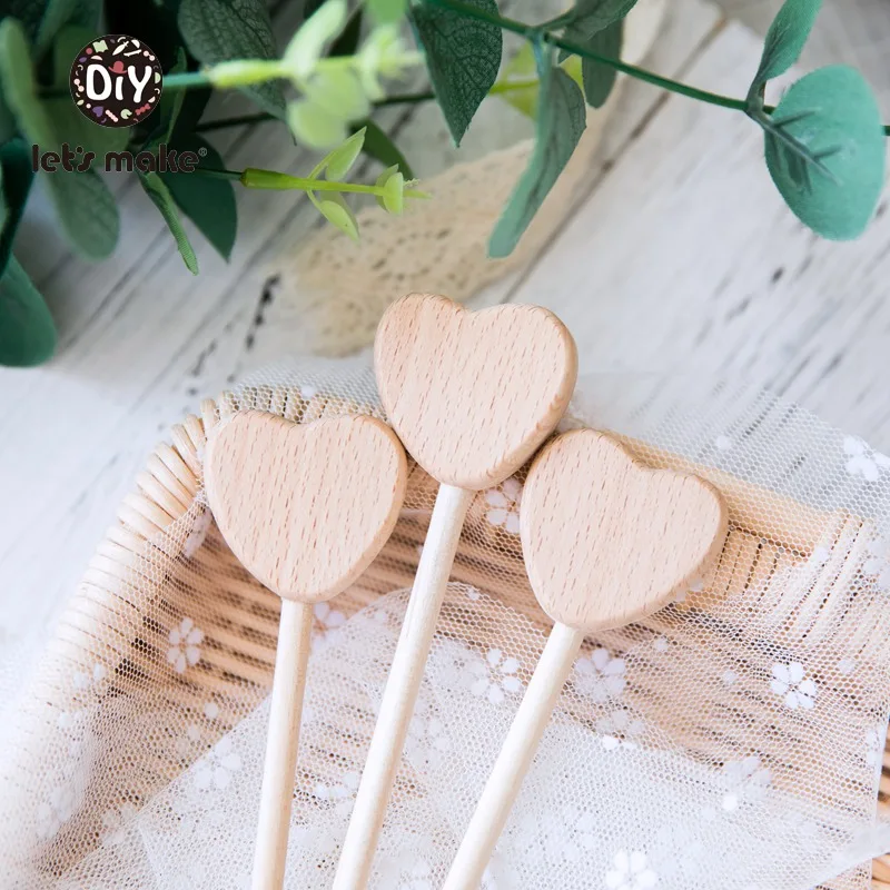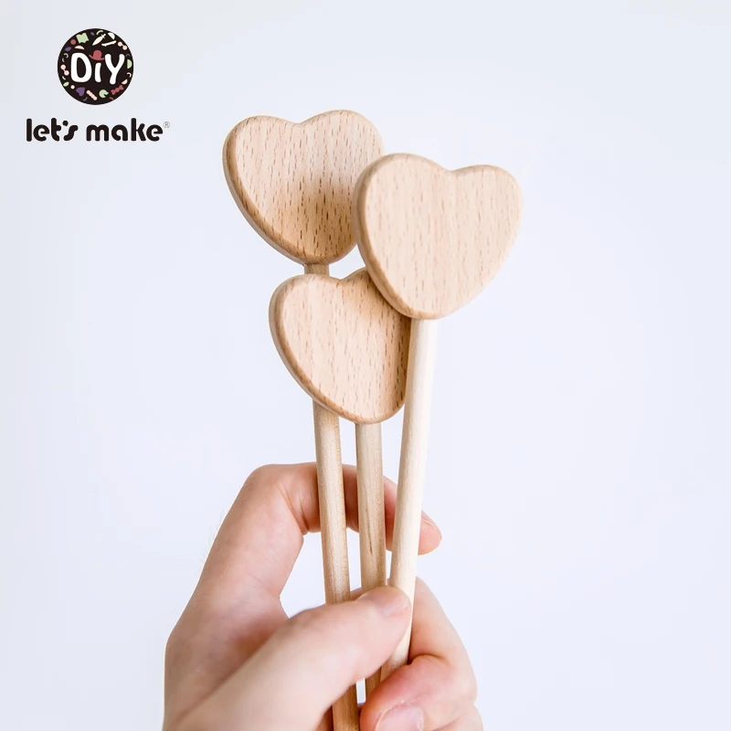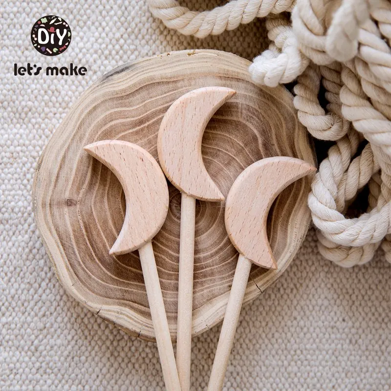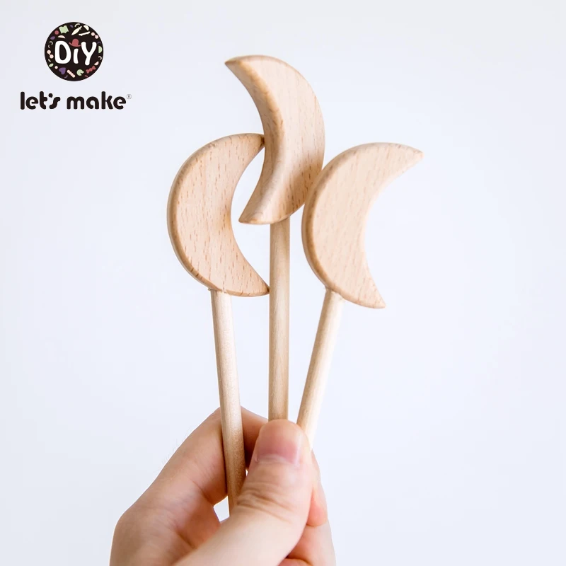 Деревянный Прорезыватель для зубов Let's Make, маленький деревянный Волшебный жезл, 3 шт. в наборе, из ПВХ, бесплатно, бук, луна, сердце, для девочек, товары для еды, игрушки для прорезывания зубов