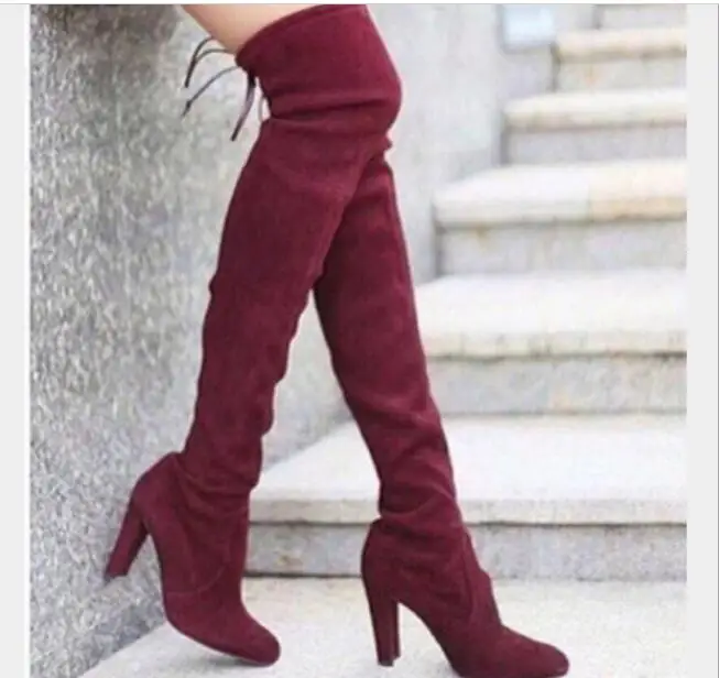 Сапоги женские выше колена из искусственной замши, привлекательные ...