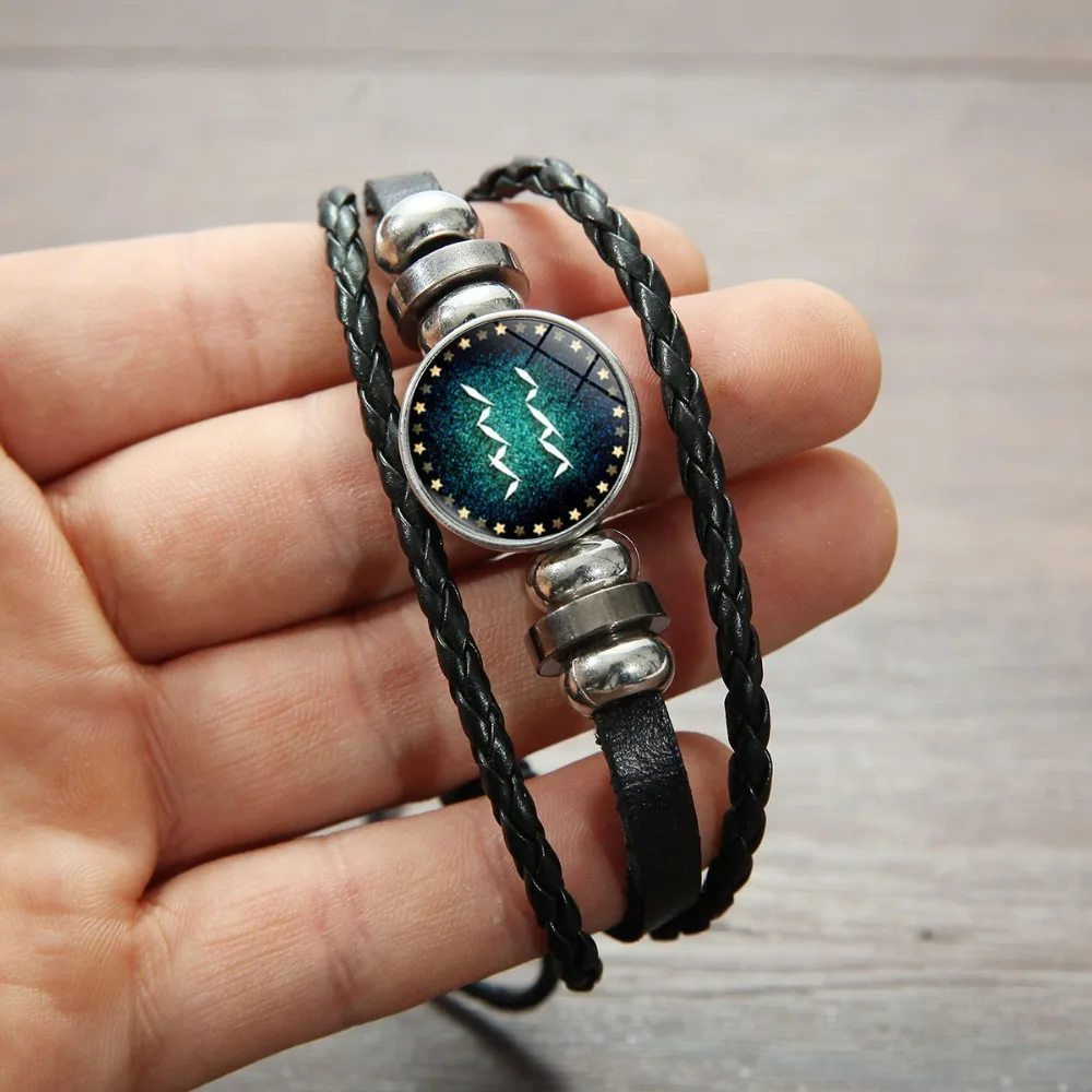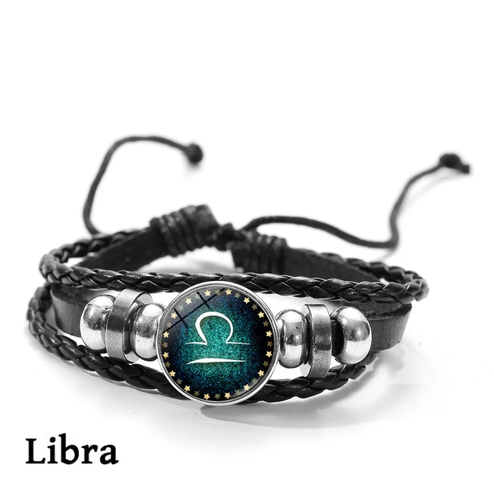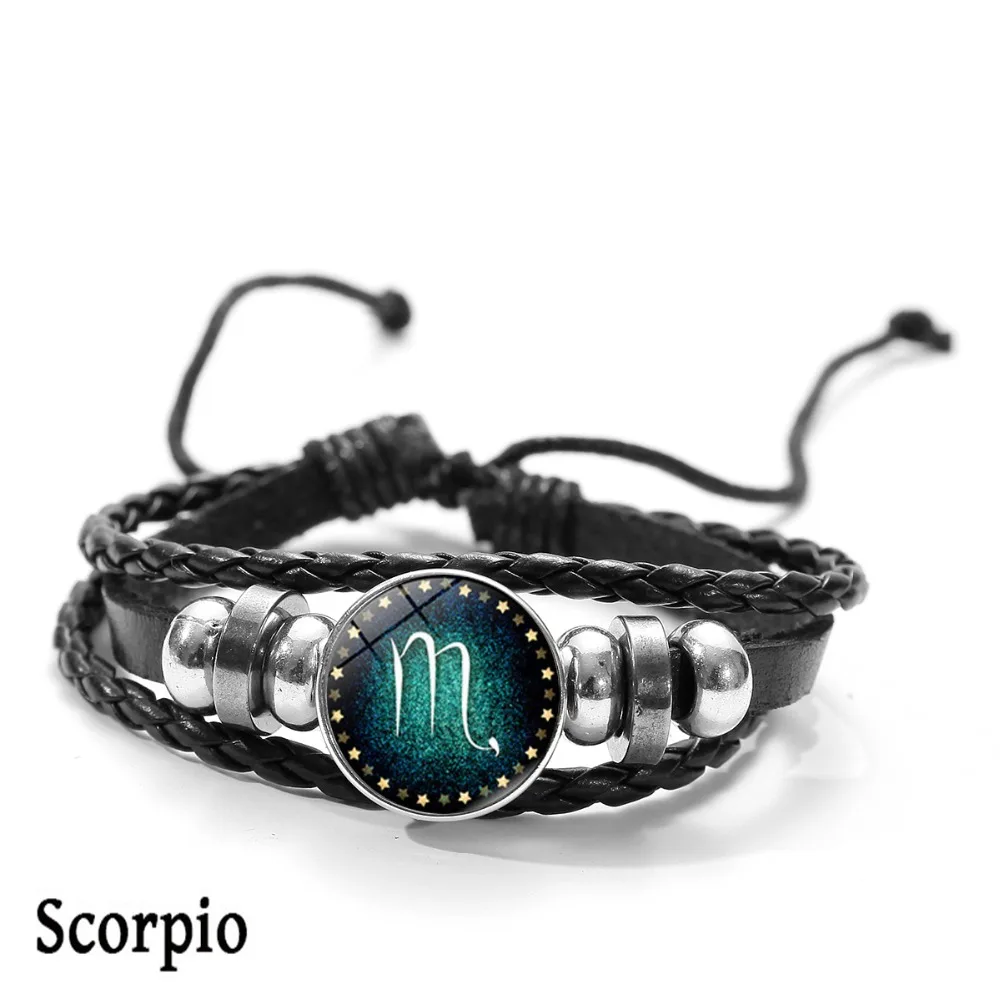 Браслет из кожи, многослойный, 12 знаков зодиака, для мужчин и женщин, Овен, рак, Лев, ювелирные изделия