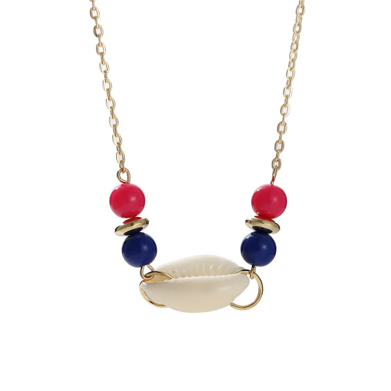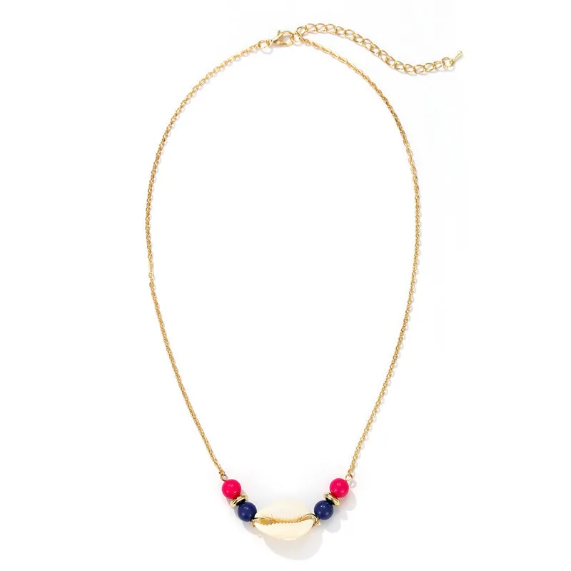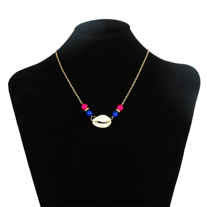 Женское ожерелье с подвеской ракушки, простой чокер из натуральных ракушек розового и синего цвета, украшение в богемном стиле, Ювелирное Украшение для лета