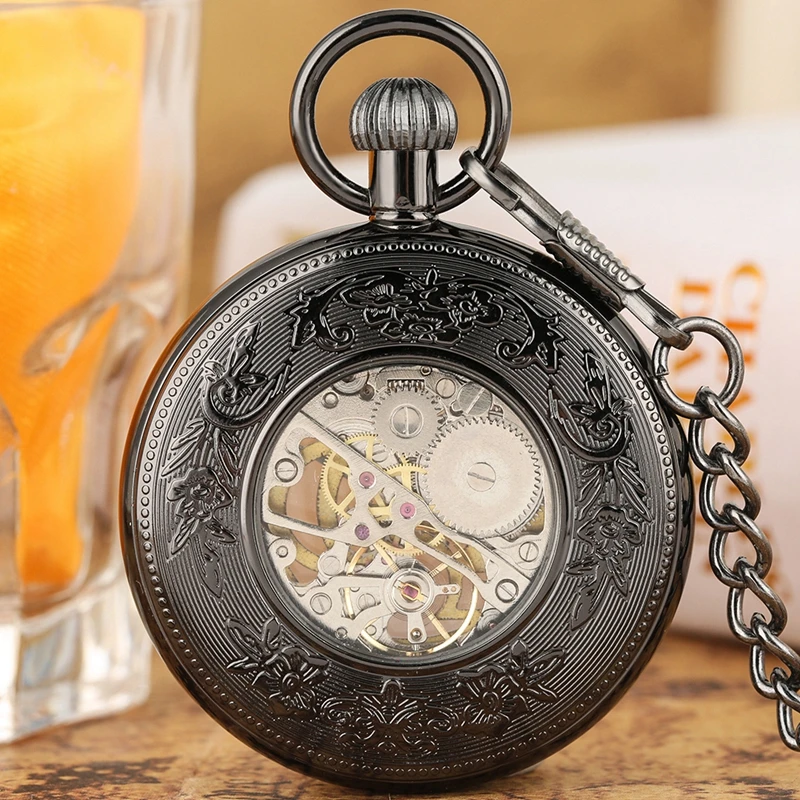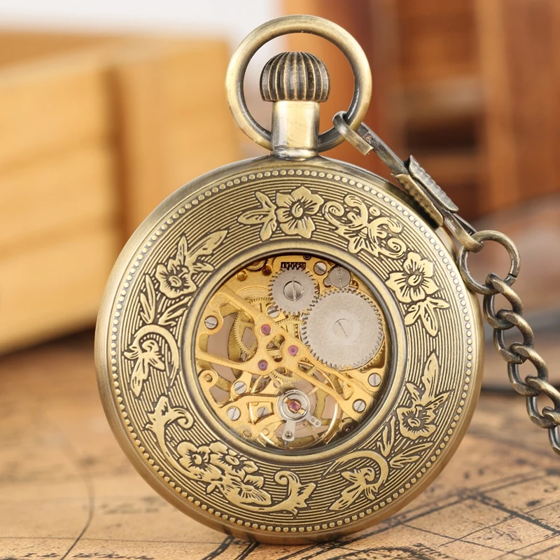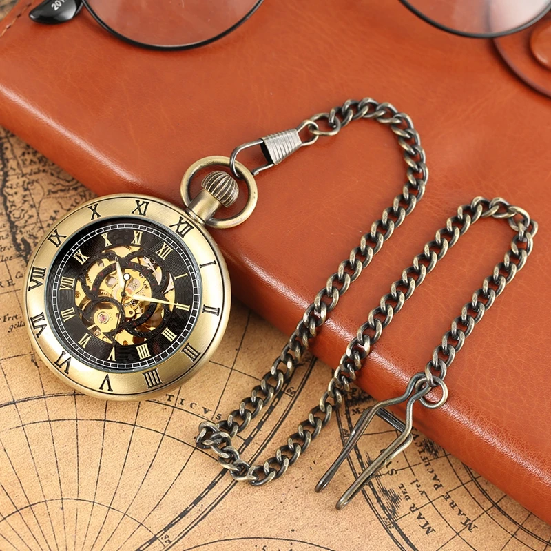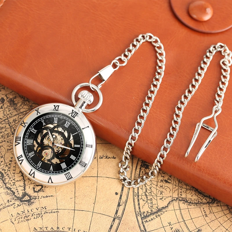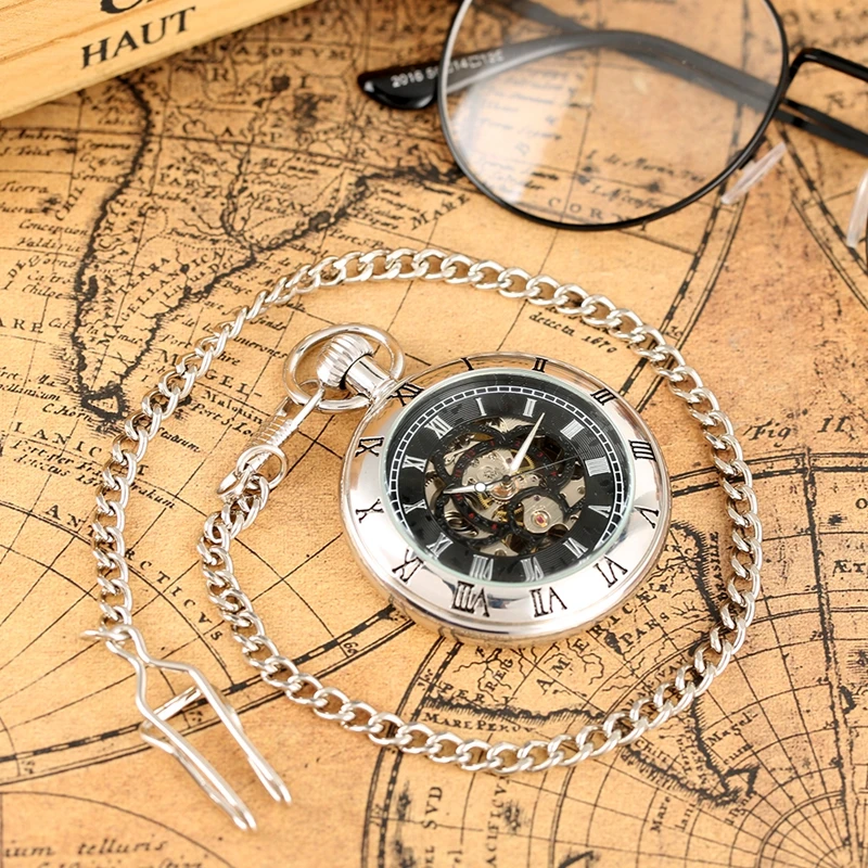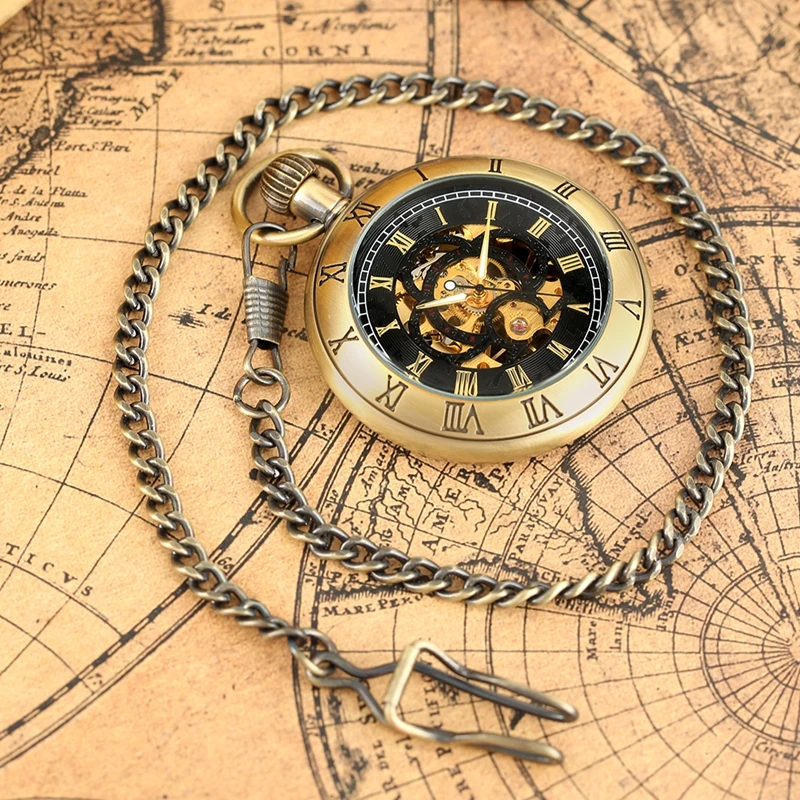 Антикварные стимпанк римские цифры дисплей Механические карманные часы ретро бронзачерныйсеребро ручная бижутерия с завитками часы брелок цепь