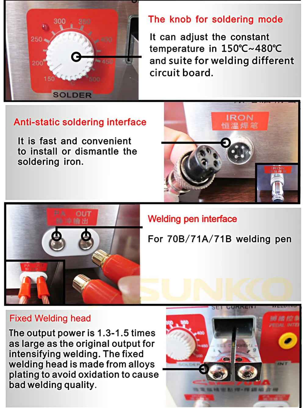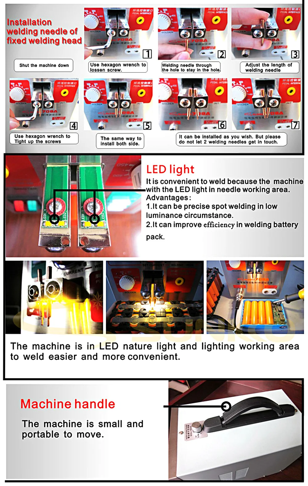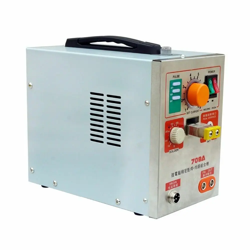 Примечание:Аккумулятор только в качестве справки на картинке! Не входит в комплект поставки! При отправке, не включая аккумуляторы! Стандартная сварочная ручка машины: HB-70B, если вам нужна другая сварочная ручка, пожалуйста, свяжитесь с нами, спасибо!1. Комбинация точечной сварки батареи и припоя монтажной платы2. Фиксированная точечная сварочная головка и Мобильная точечная сварочная ручка объединяются в одном аппарате, так что сварка станет гибкой.3. Обладают функцией 2,4,6,8 выбора сварочных импульсов, делают припой надежным.4. Обладает быстрым регулятором сварочного тока, выбор тока станет быстрым и эффективным.5. Антистатическая паяльная станция, которая точно контролирует температуру, подходит для сварки любой интегральной схемы или проводки.6. Съемные ножки ведьмы могут удовлетворить восстановление положения сварки или сложные технологии.7. Фиксированная точечная сварочная головка имеет устройство регулирования давления, что делает припой более надежным.Параметры:Деталь точечной сваркиПоставка Напряжение AC 220V / 50 Гц, 110 В/60 Гц (Выберите)Мощность 1,9 кВт (мгновенно)Ток 500 АЭлектрический выключатель утечки 60 A или более 60 AВремя двойного импульса 1 ~ 10 мс(Мгновенное время сварки) (регулируется, регулируя ручку сварочного тока)Время четырех импульсов 2 ~ 20 мс (регулируется)(Мгновенное время сварки)Время восьми импульсов 8 ~ 80 мс (регулируется)(Мгновенное время сварки)Диапазон сварочных штифтов 5 - 6 ммСварочное давление 300 - 500 гРегулируемое расстояние сваркиПодходящая толщина сварки 0,03-0,3 мм для фиксированной медной головки0,03-0,2 мм для мобильного сварочного пераЧасть паяльникаТемпература 150 °C ~ 450 °CМощность 50 ВтВыходное напряжение 20 В постоянного токаГарантия:Один годТариф:Цена дозы не включает в себя тариф, клиенты должны оплатить тариф, когда посылка прибудет на вашу местную таможнюПримечание:Толщина сварки 0,03-0,3 мм указывает на диапазон толщины всех сплавов, которые он может быть сварного шва, для никеля или никелированной стали диапазон составляет 0,08-0,3 мм.Аксессуары в подарок:1 шт 6 раздел 18650 батарейный зажим50 шт 0,1*4*100 мм никелированная сталь2x15-отверстия черный держатель батареи