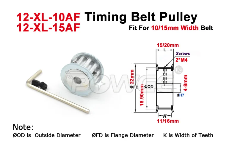 Зубчатый шкив POWGE 12, XL, синхронный шкив для зубчатой ленты 12 T, 12 зубчатых ремней, размер XL, трапециевидный шкив 12-XL, AF